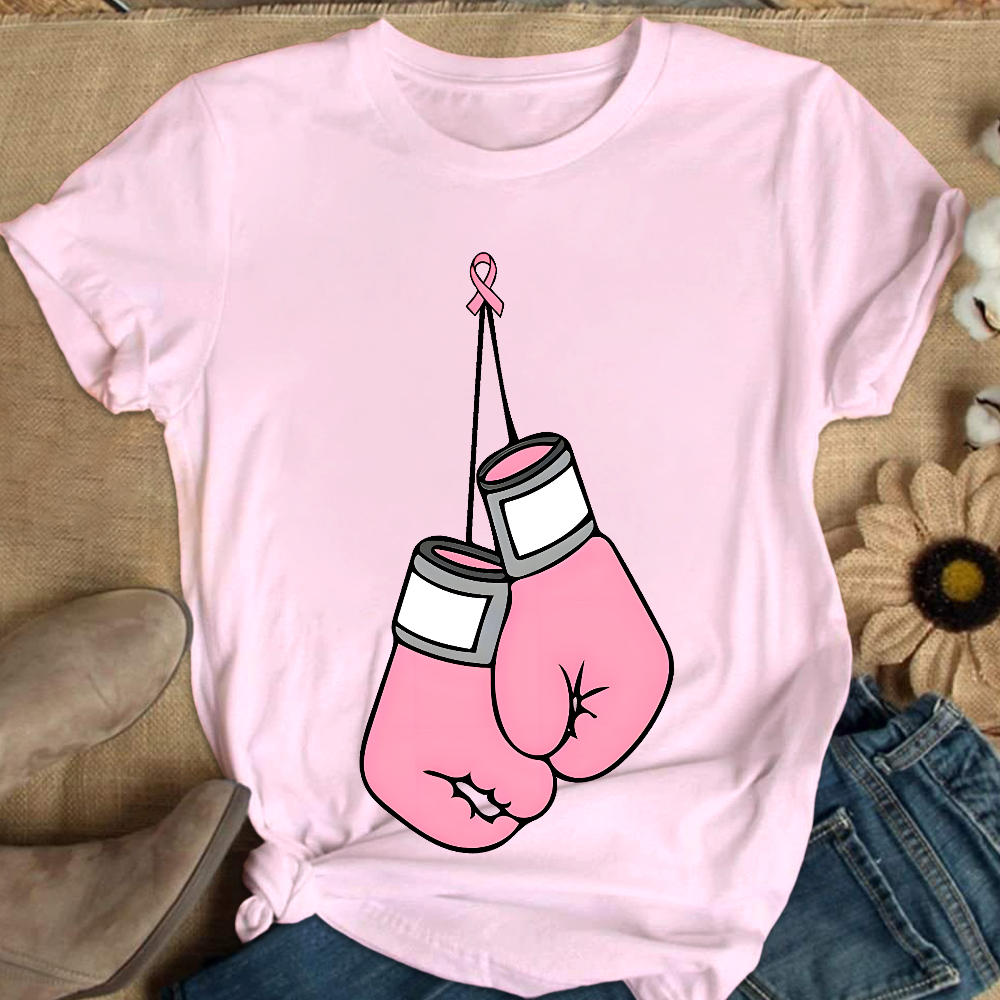 Pink Boxing Gloves Breast Cancer Fight Cotton Nurse T-shirt