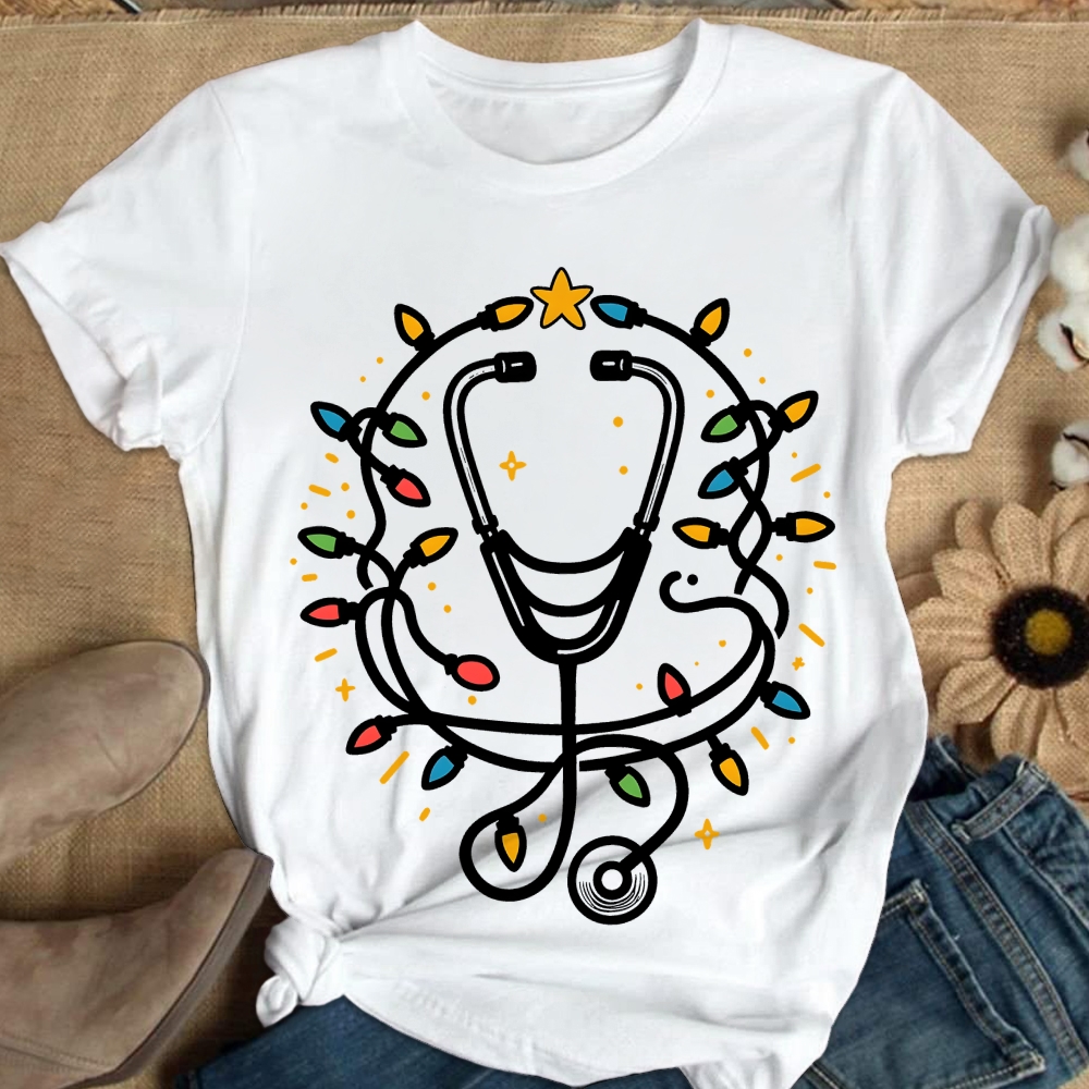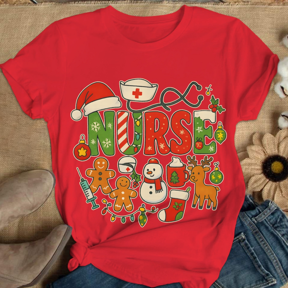 Cute Medical Staff Xmas Cotton Nurse T-shirt