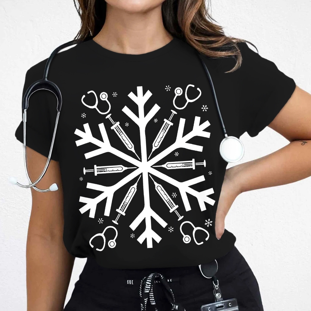 Nurse Snowflake Vibes Christmas Cotton Doctor T-shirt