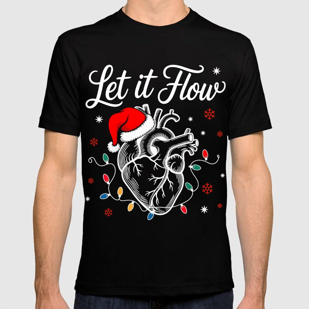 Let It Flow Santa Hat Heart With Lights Cotton Doctor T-shirt