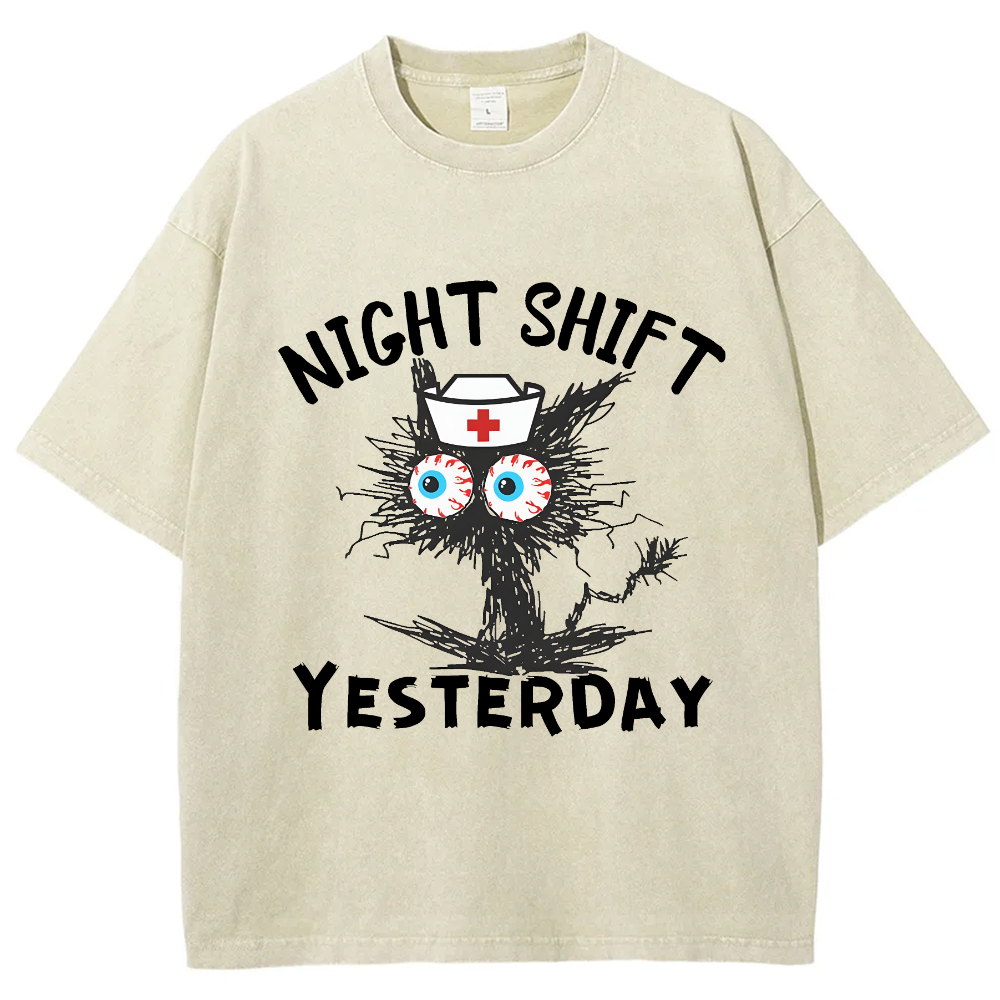 Funny Night Shift Yesterday Vintage Washed T-shirt