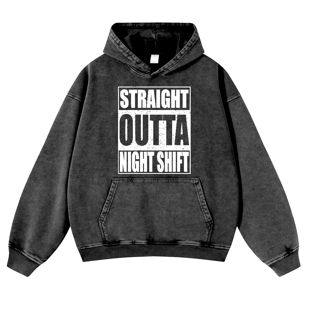 Straight Outta Night Shift Vintage Washed Hoodie