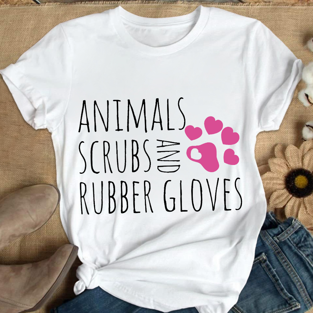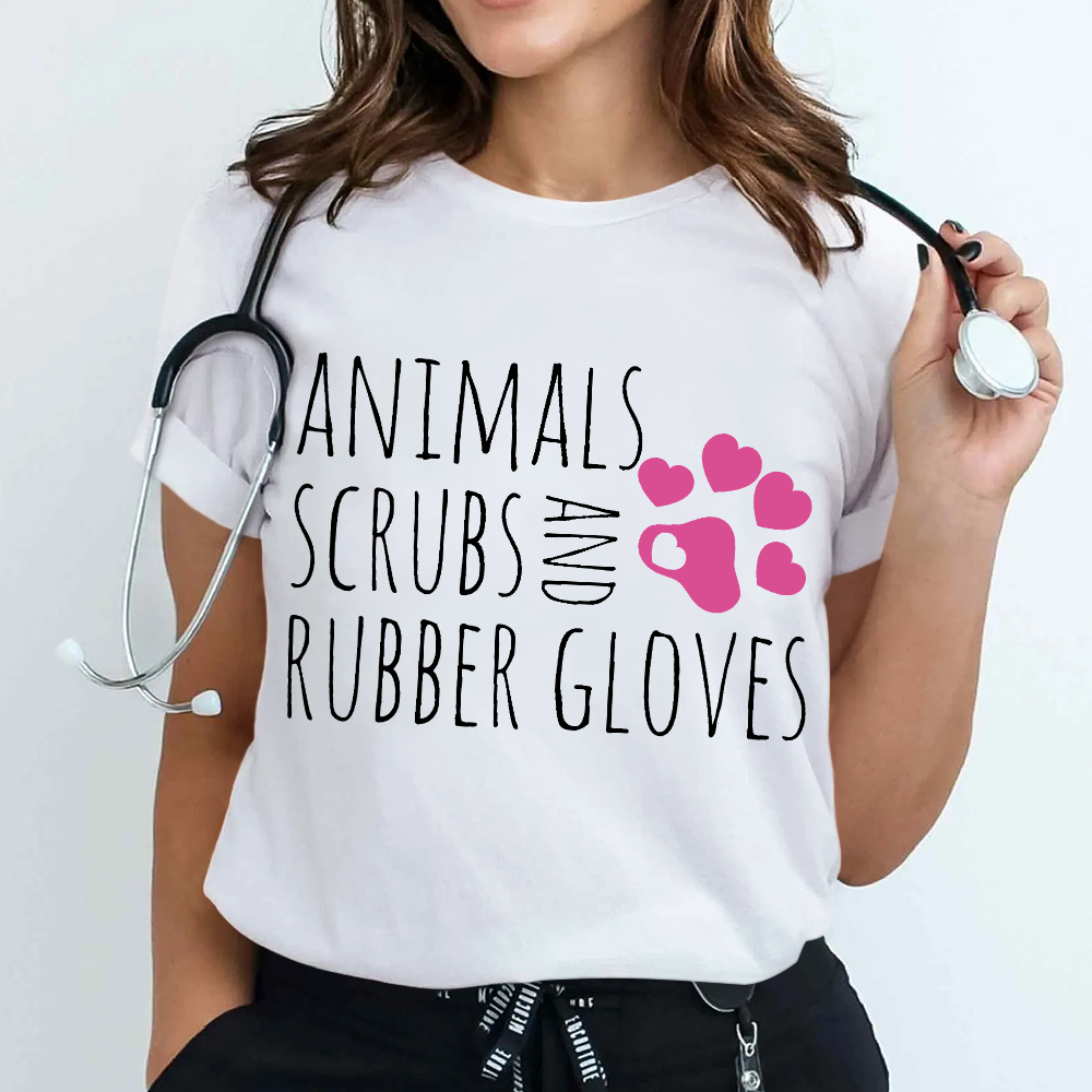 Animals Scrubs And Rubber Gloves Funny Veterinarian Cotton Nurse T-shirt