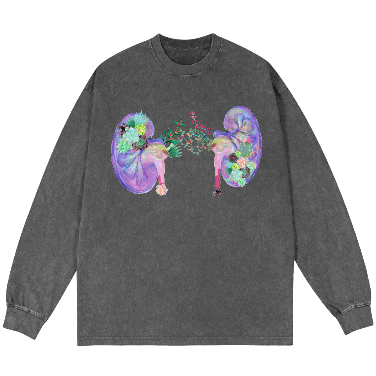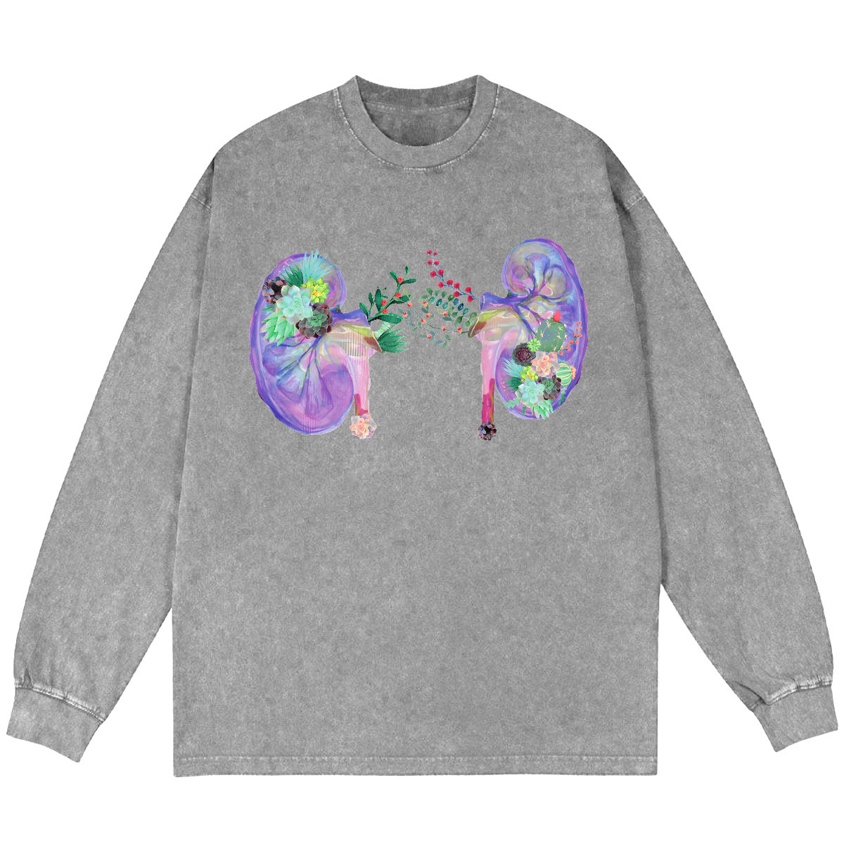 Succulent And Cactus Floral Anatomical Kidneys Vintage Washed Sweatshirts
