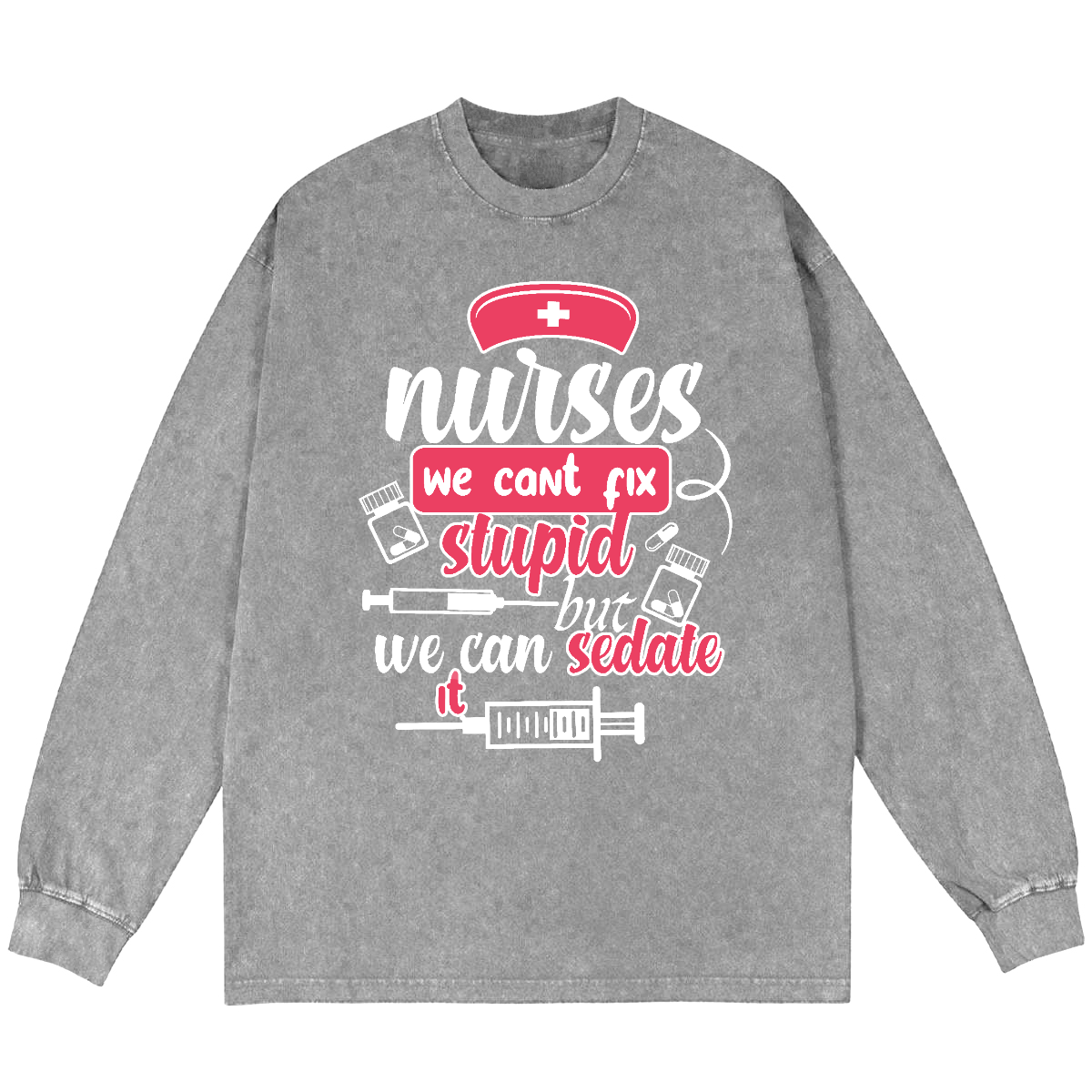 Nurses We Can't Fix Stupid But We Can Sedate It Vintage Washed Sweatshirts
