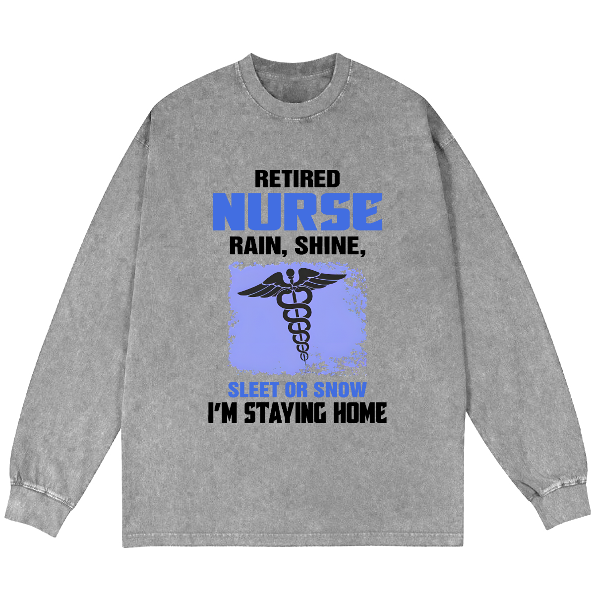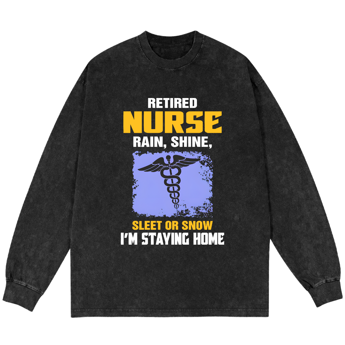 Retired Nurse Rain Shine Sleet Or Snow I'm Staying Home Vintage Washed Sweatshirts