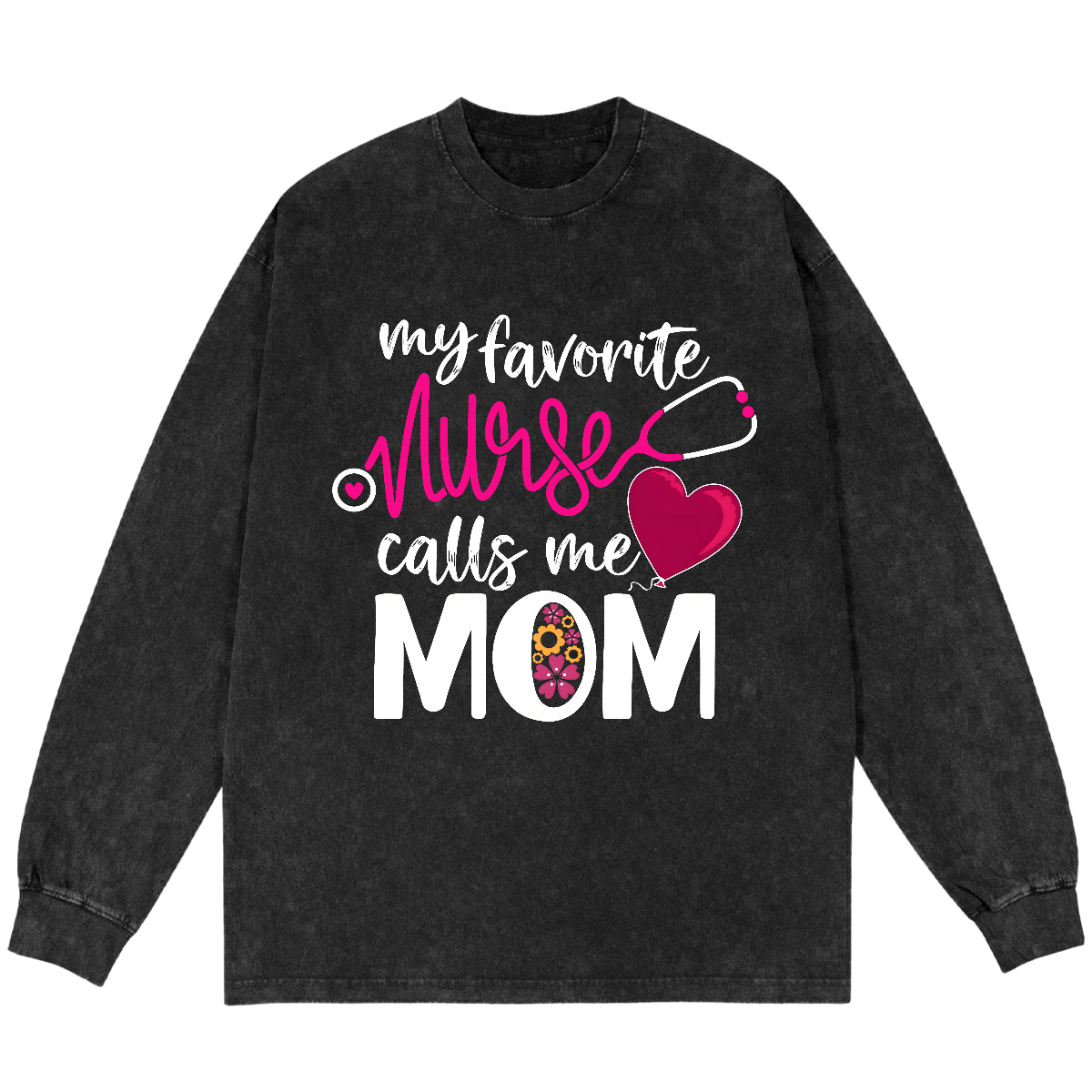 My Favorite Nurse Call Me Mom Vintage Washed Sweatshirts