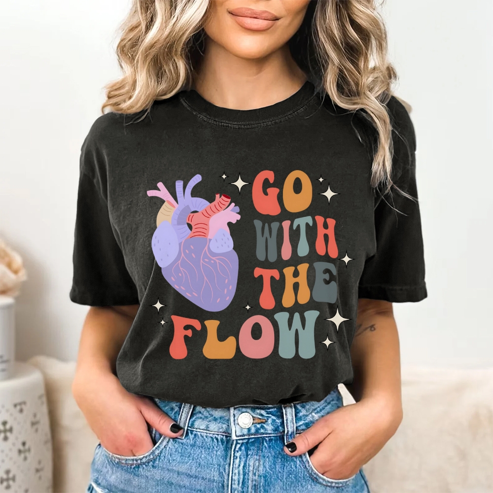 Go With The Flow Heart Flow Anatomy Vintage Washed T-shirt