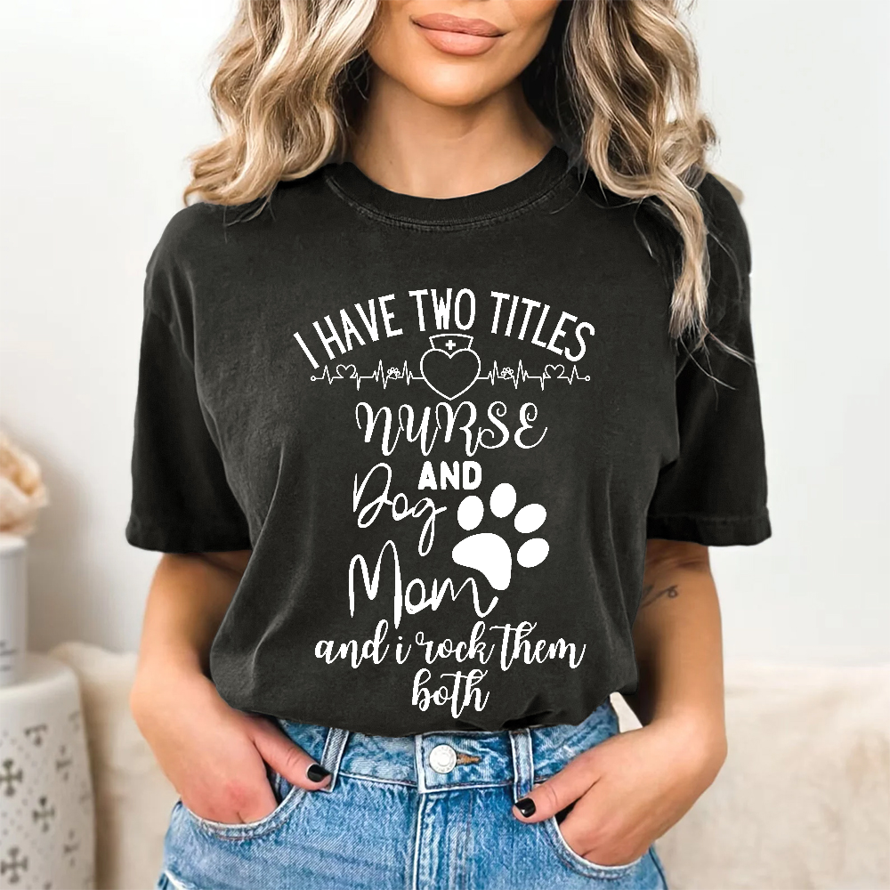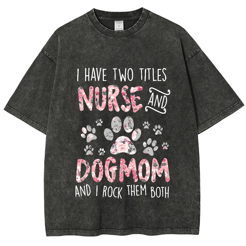 I Have Two Titles Nurse And Dog Mom Vintage Washed T-shirt