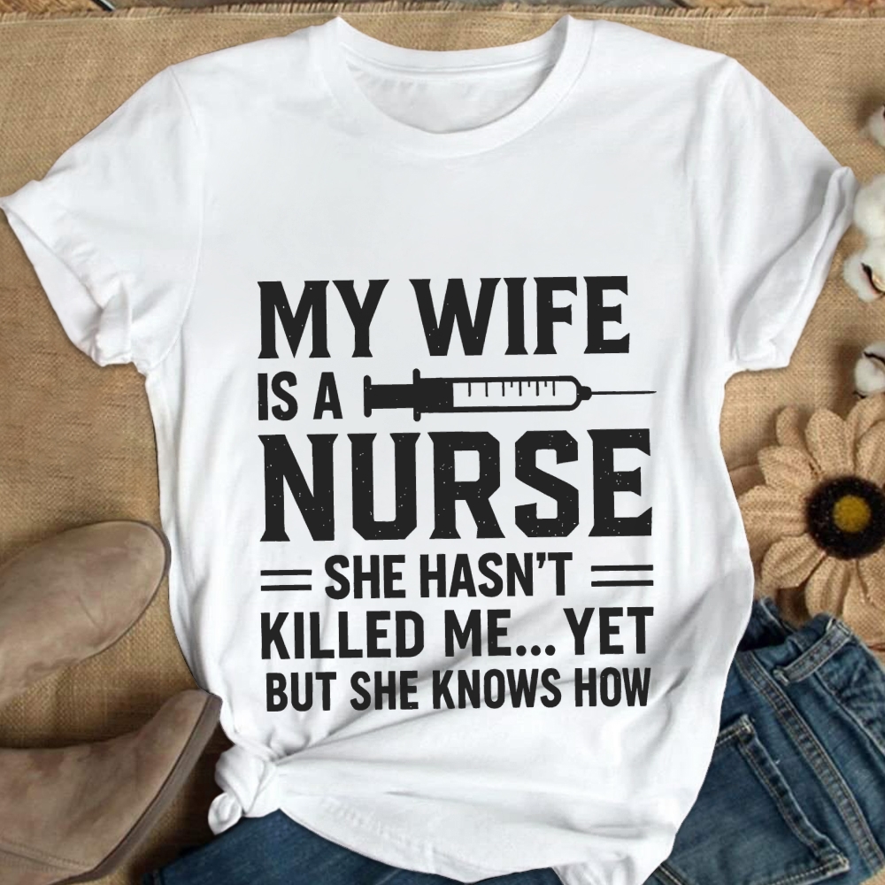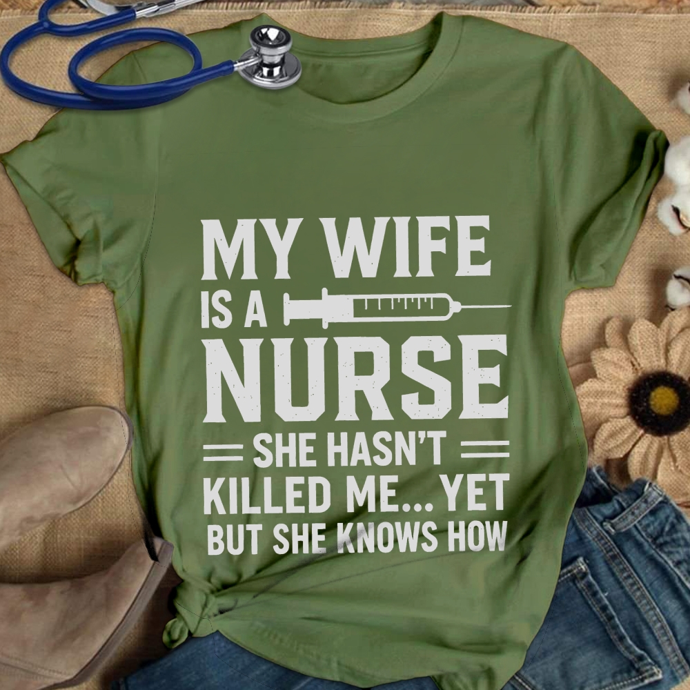 My Wife Is A Nurse She Hasn't Killed Me Yet But She Knows How Cotton Nurse T-shirt