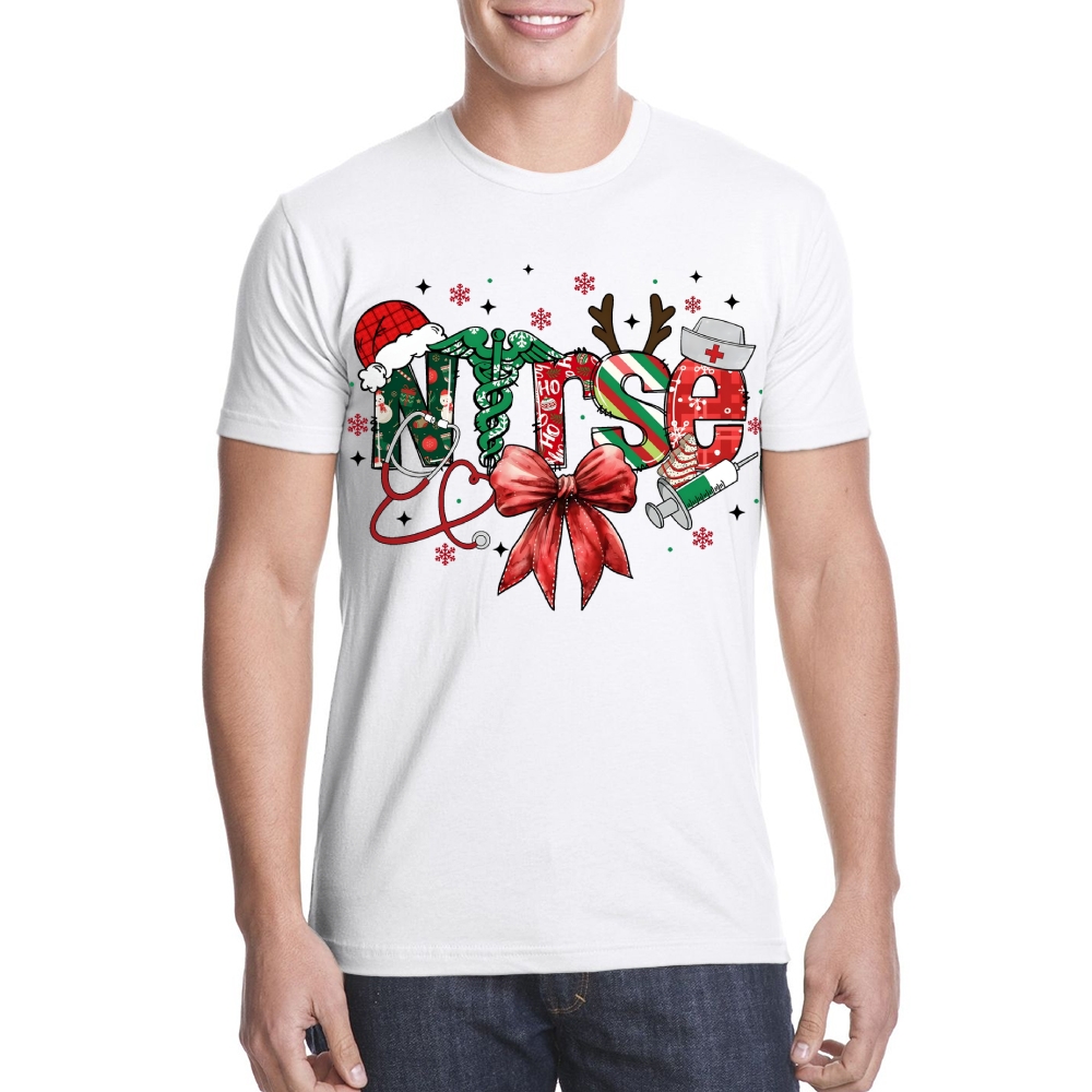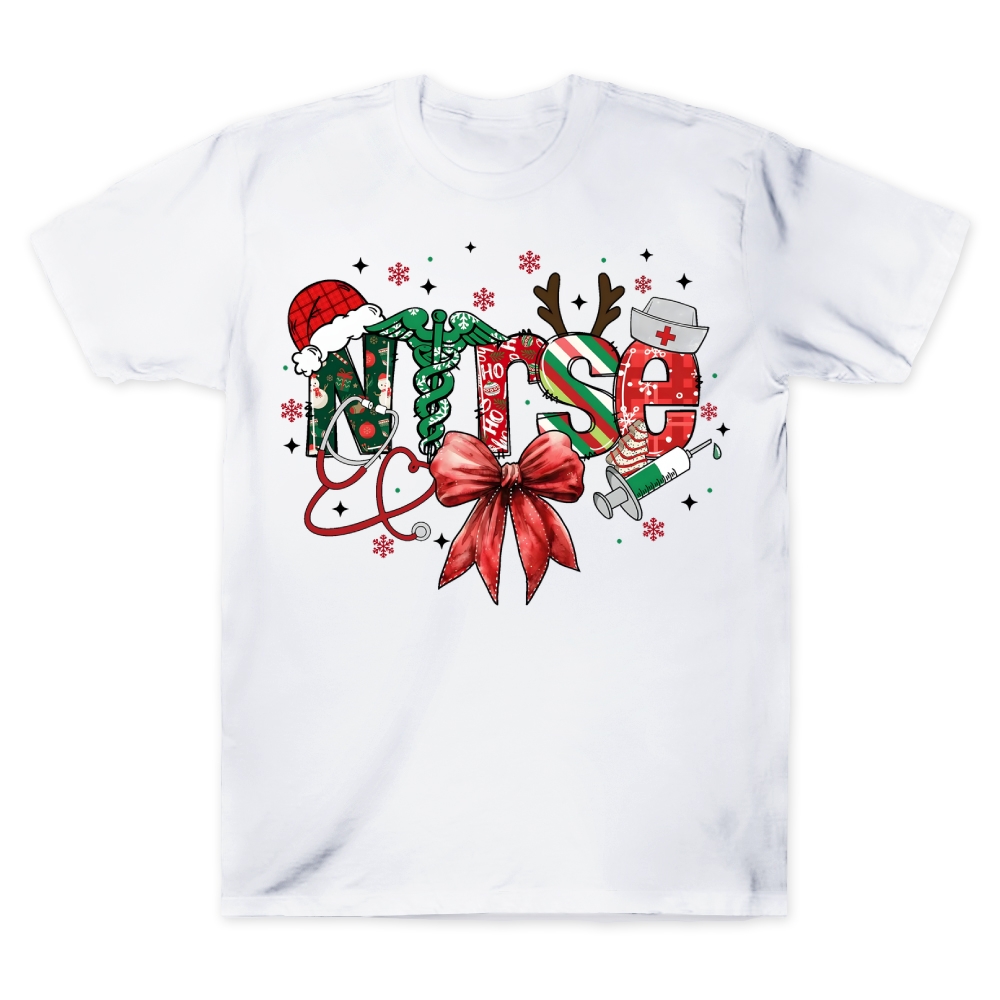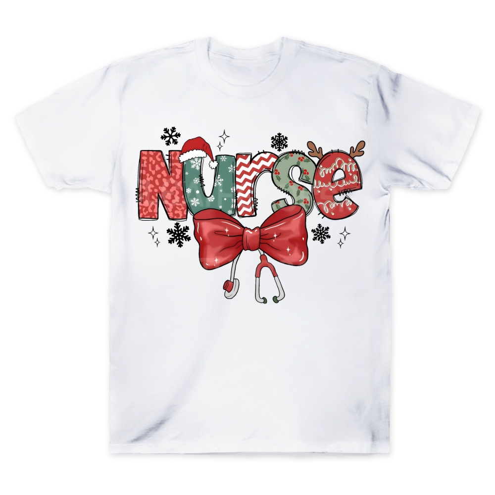 Retro Christmas Nurse Bow Cotton Nurse T-shirt