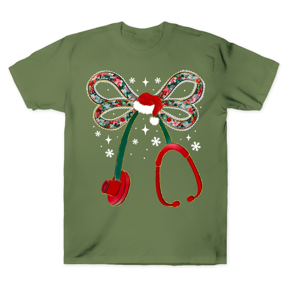 Retro Santa Stethoscope Bow Cotton Nurse T-shirt