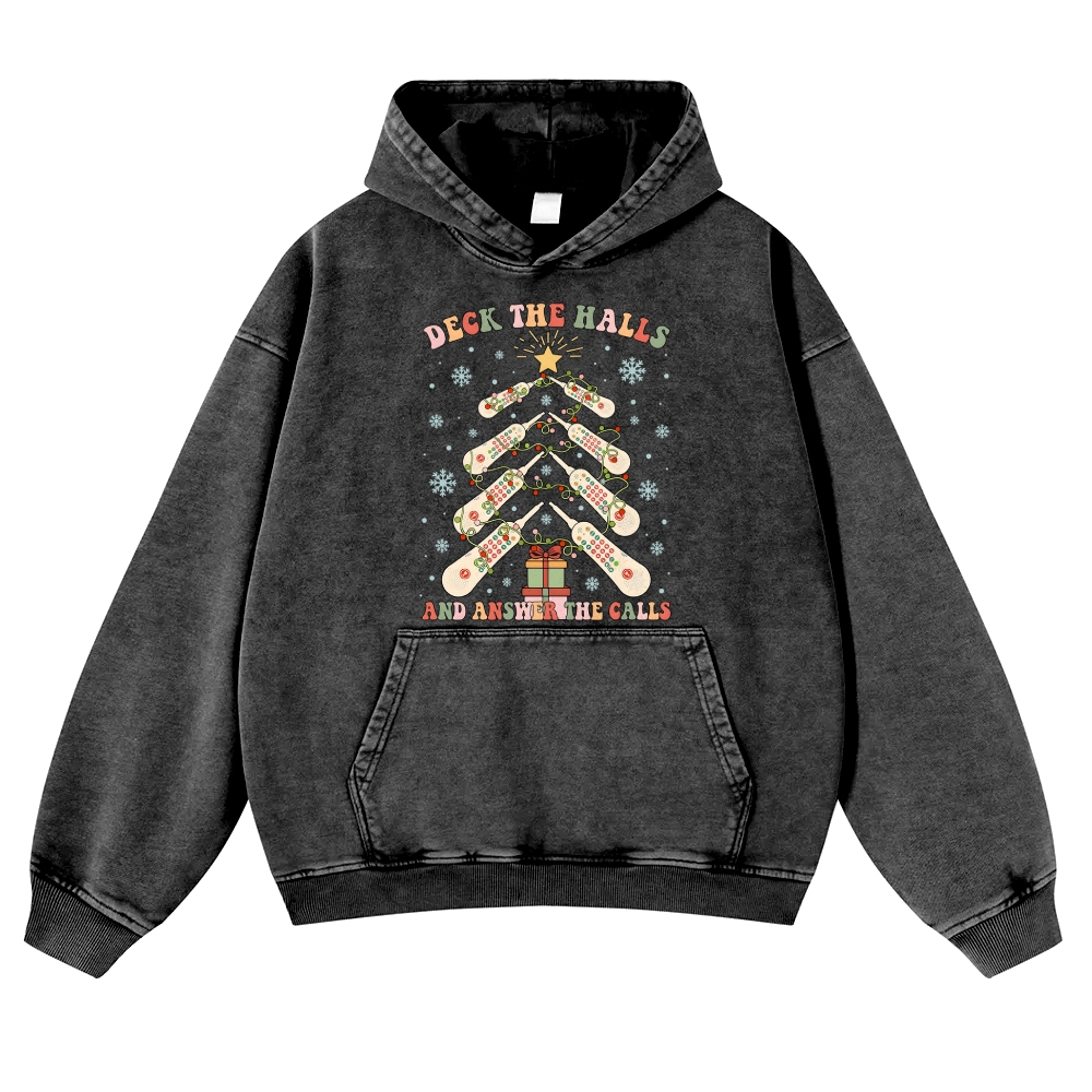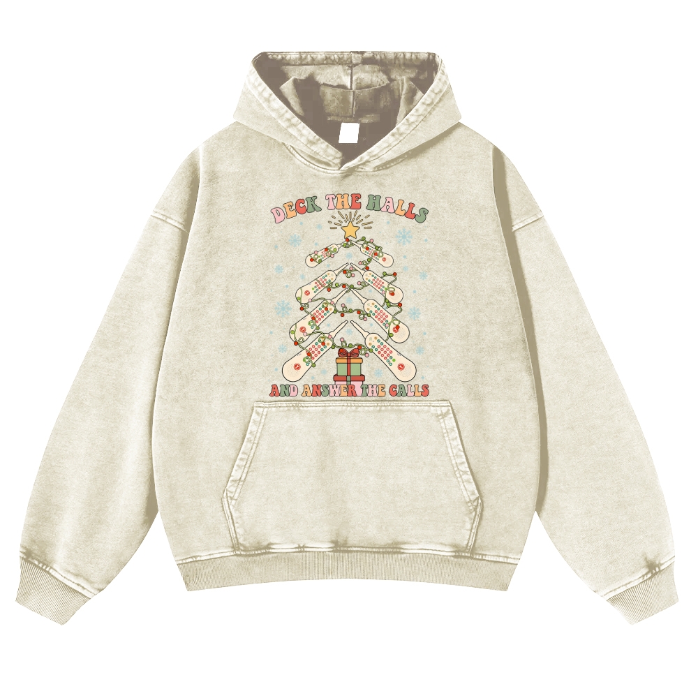 Deck the Halls Answer the Calls Vintage Washed Hoodie