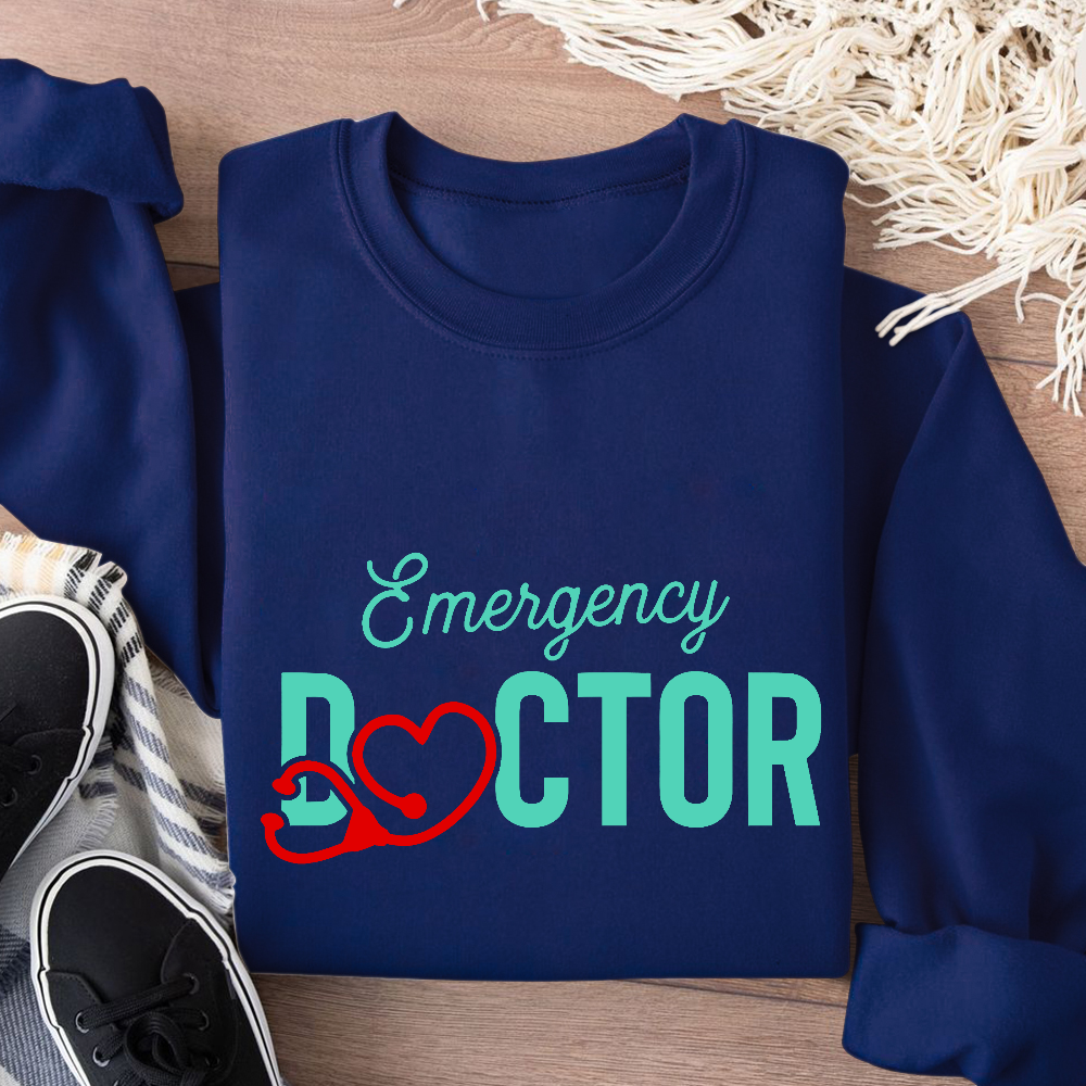 Emergency Doctor Stethoscope Heartbeat First Aid Cotton Pullover Sweatshirt