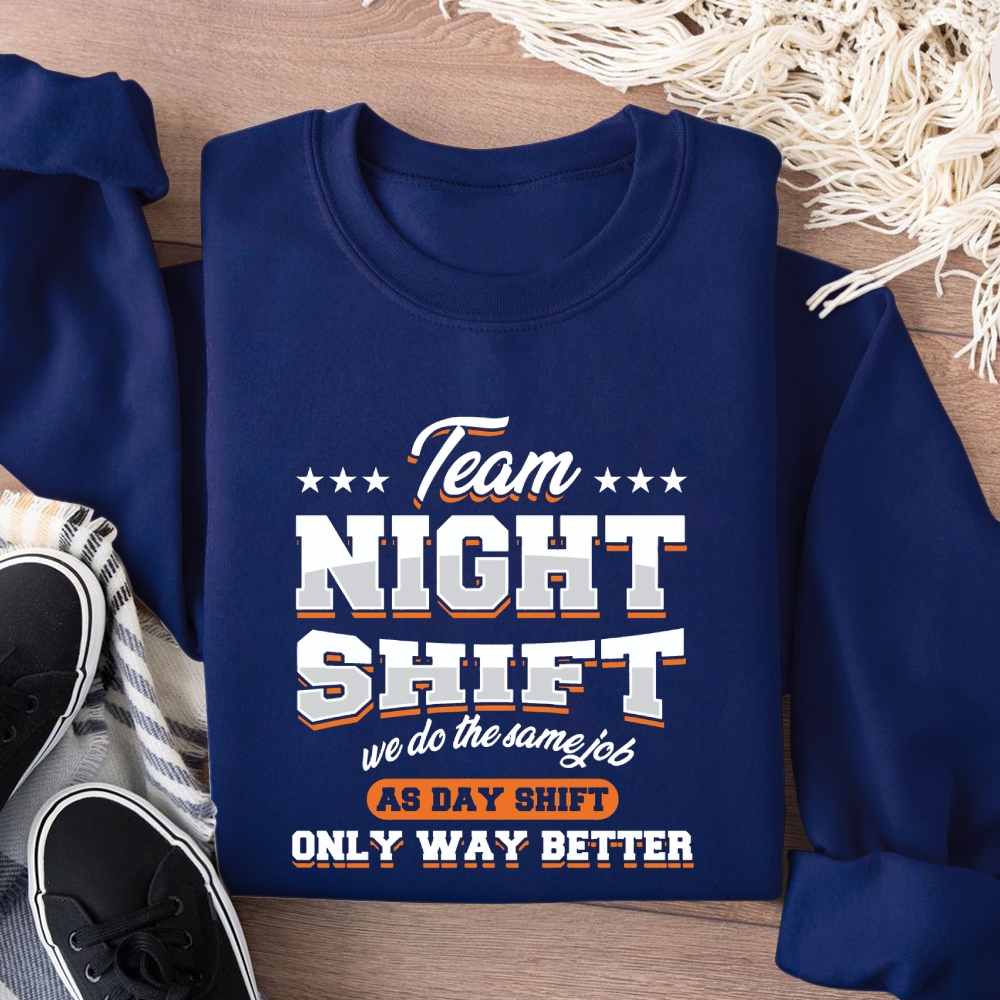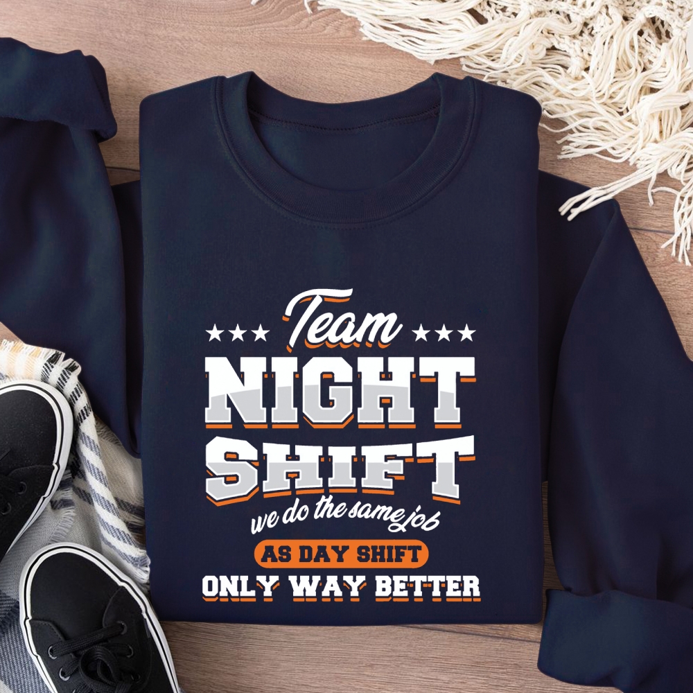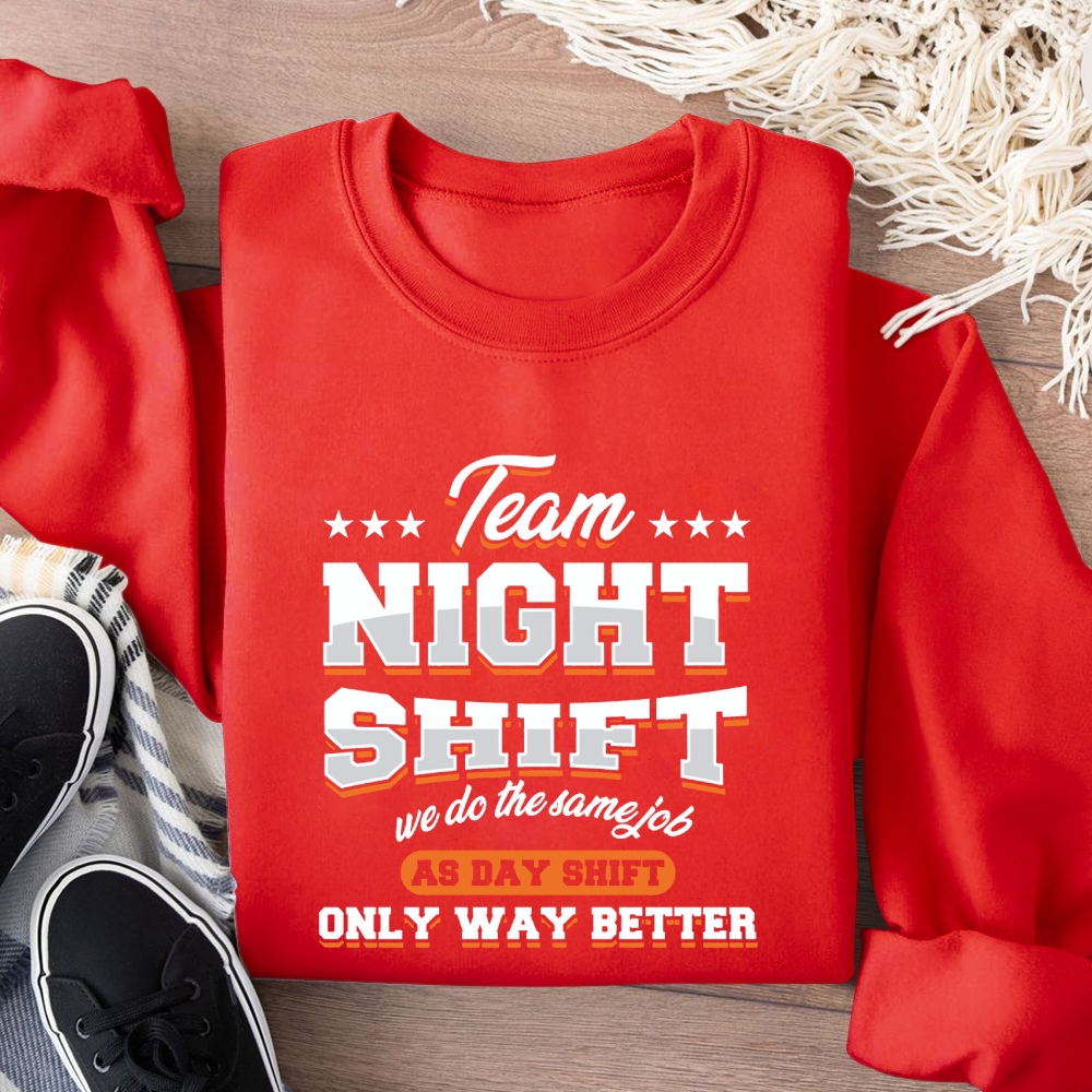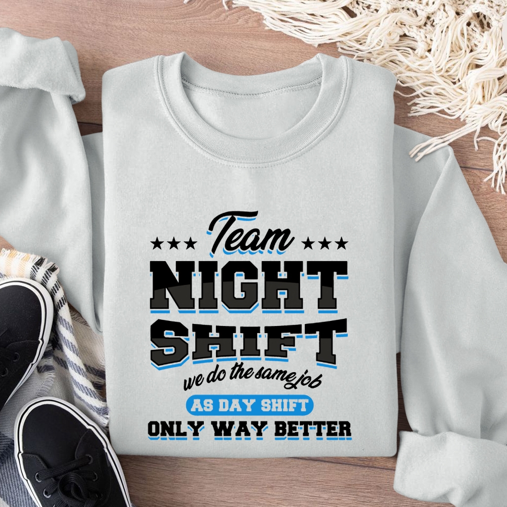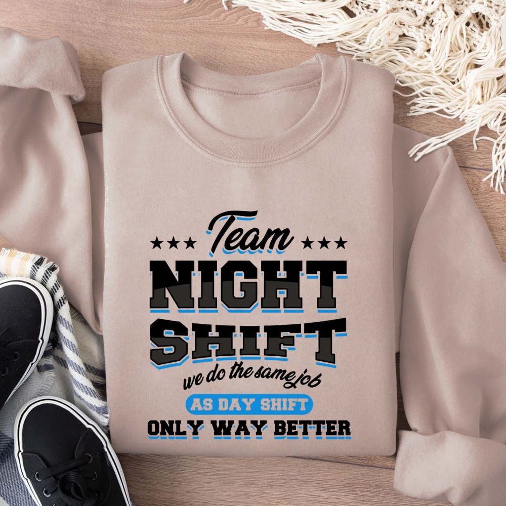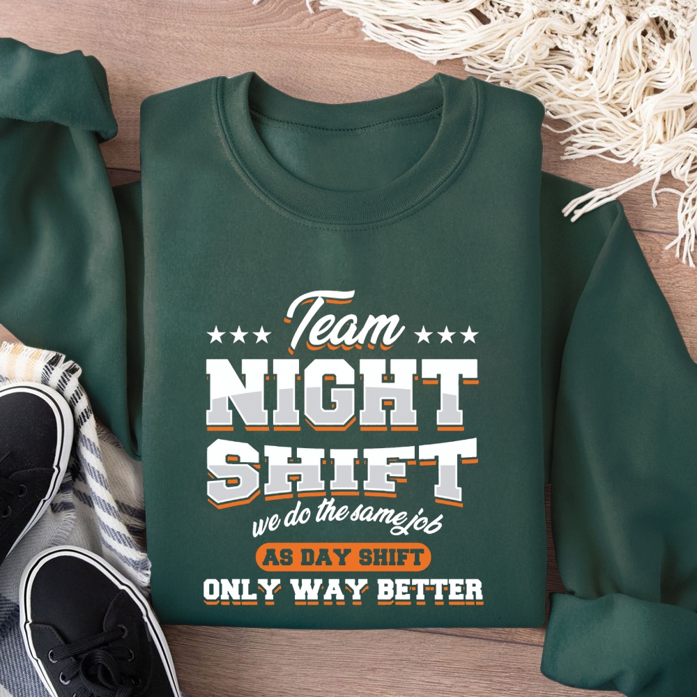 Funny Team Nightshift Cotton Pullover Sweatshirt