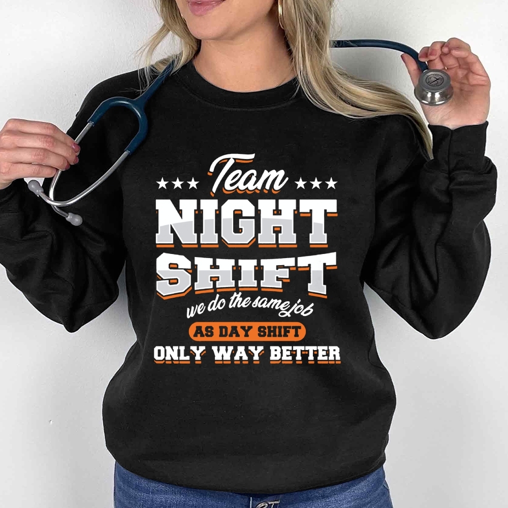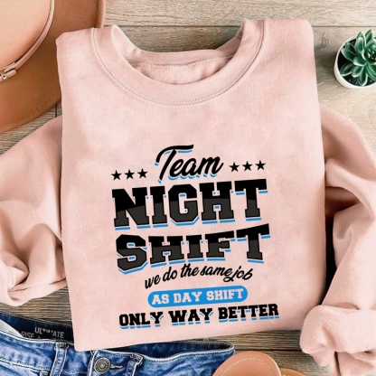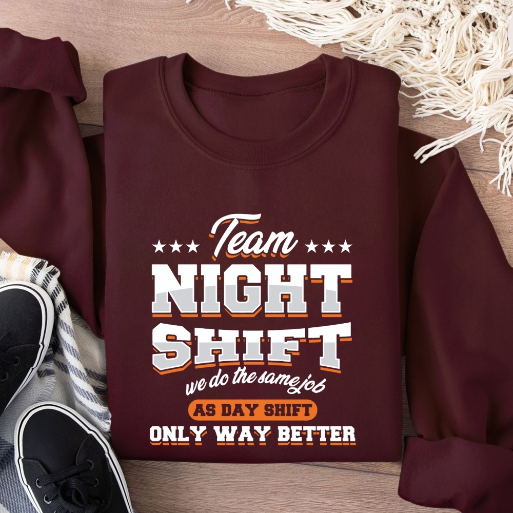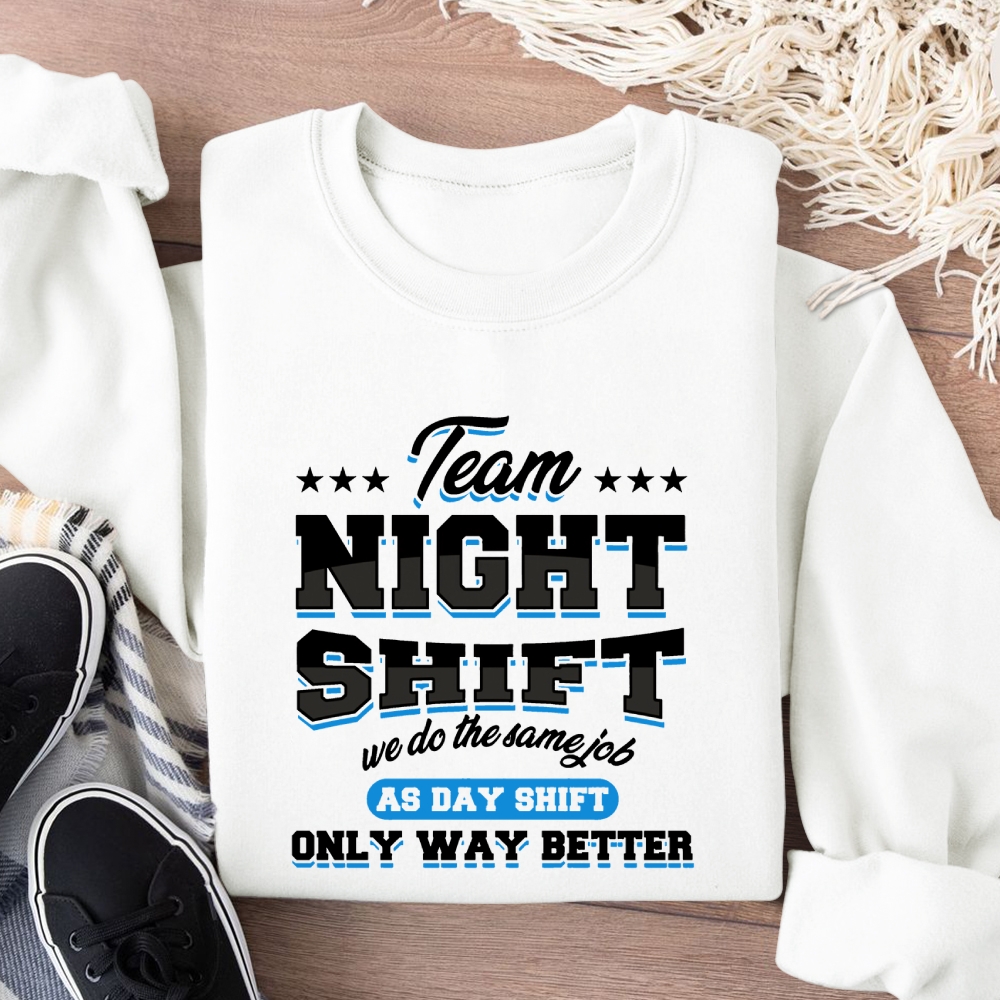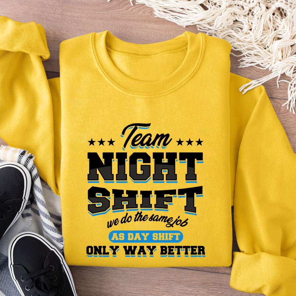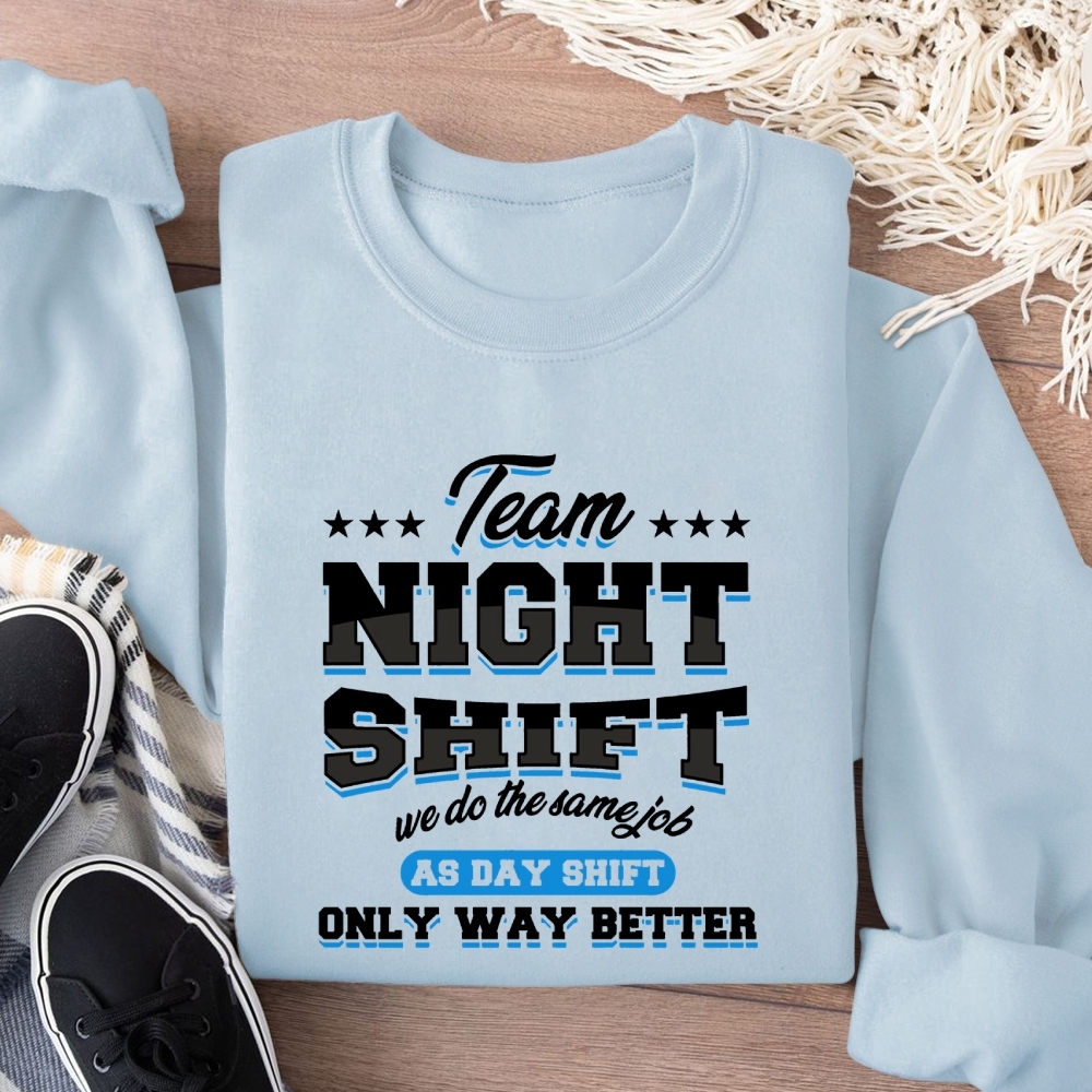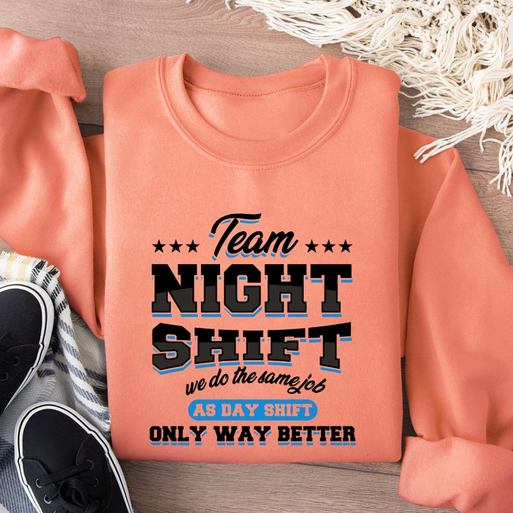 Funny Team Nightshift Cotton Pullover Sweatshirt