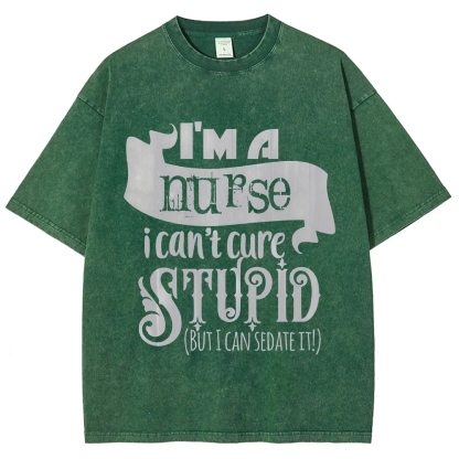 I'm A Nurse I Can't Cure Stupid But I Can Sedate It Vintage Washed T-shirt