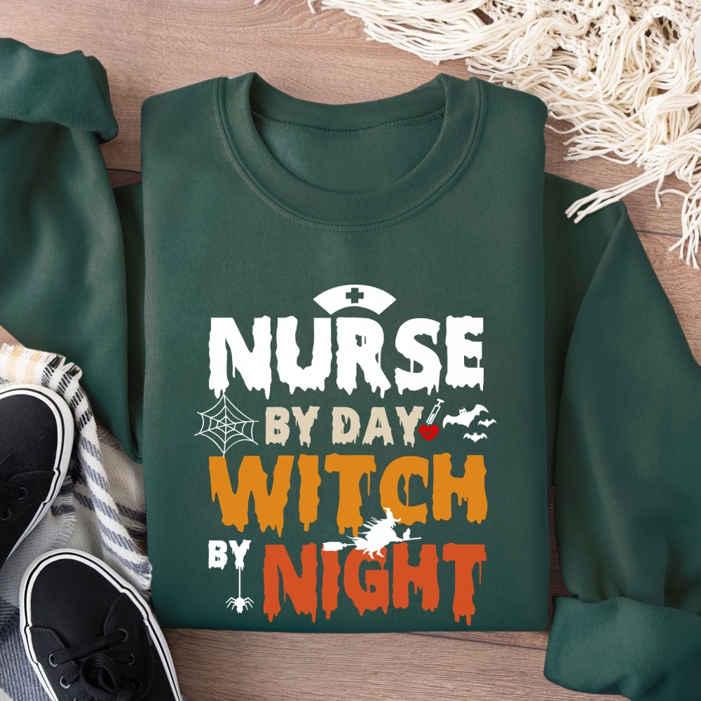 Nurse By Day Witch By Night Halloween Cotton Pullover Sweatshirt