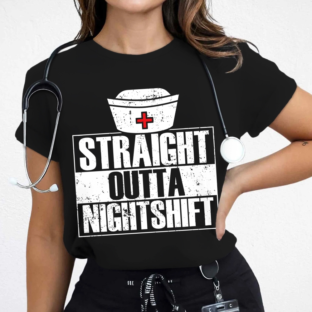Straight Outta Nightshift Funny Quote Cotton Nurse T-shirt