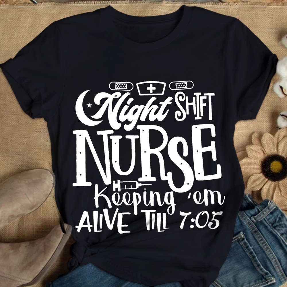 Night Shift Nurse Keeping Alive Till 7��05 Cotton Nurse T-shirt