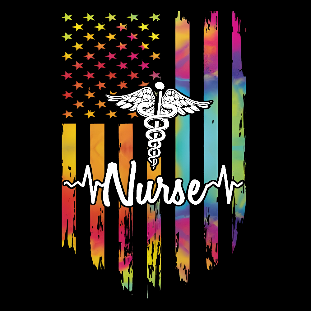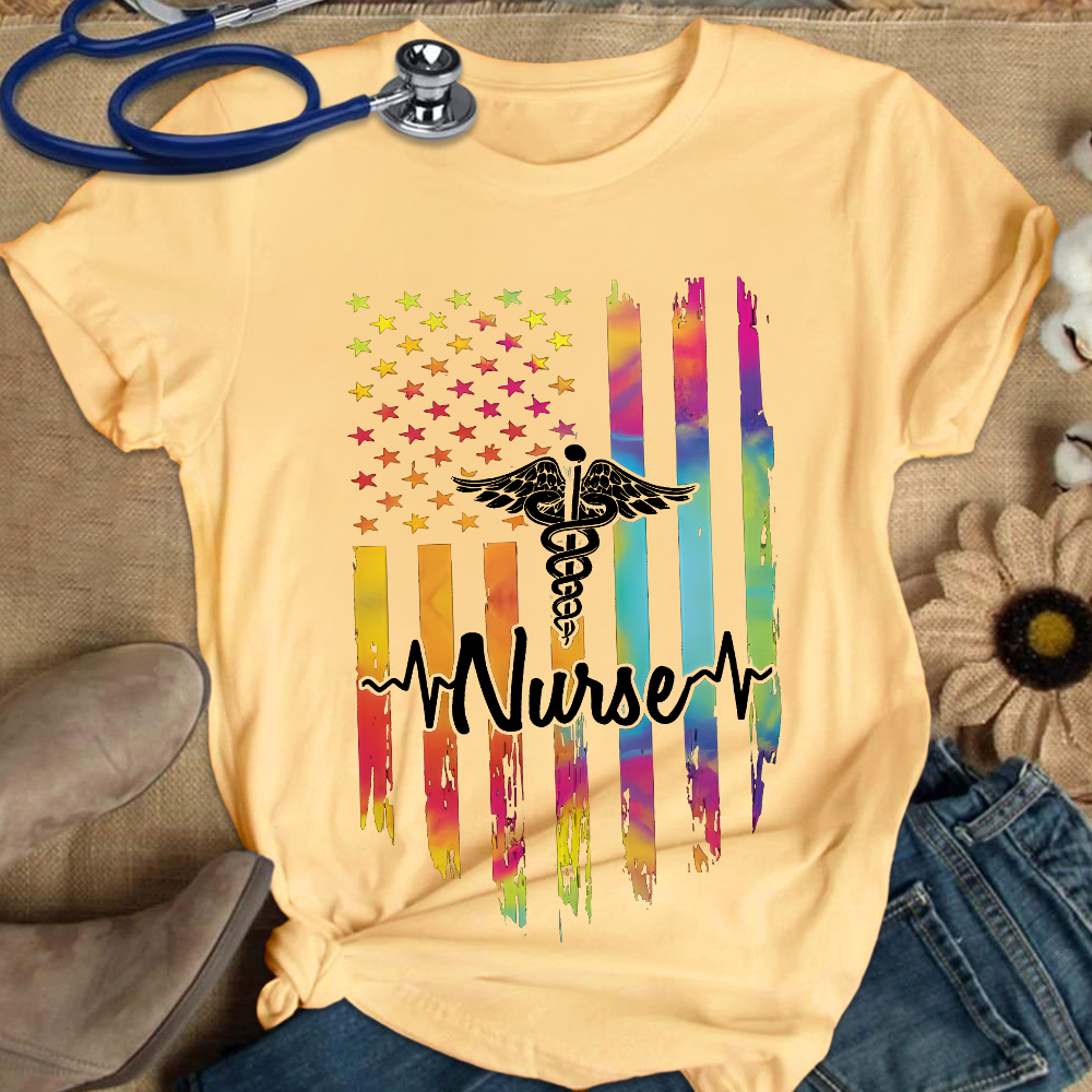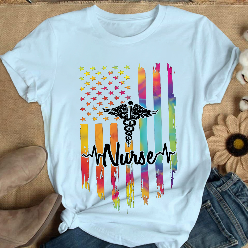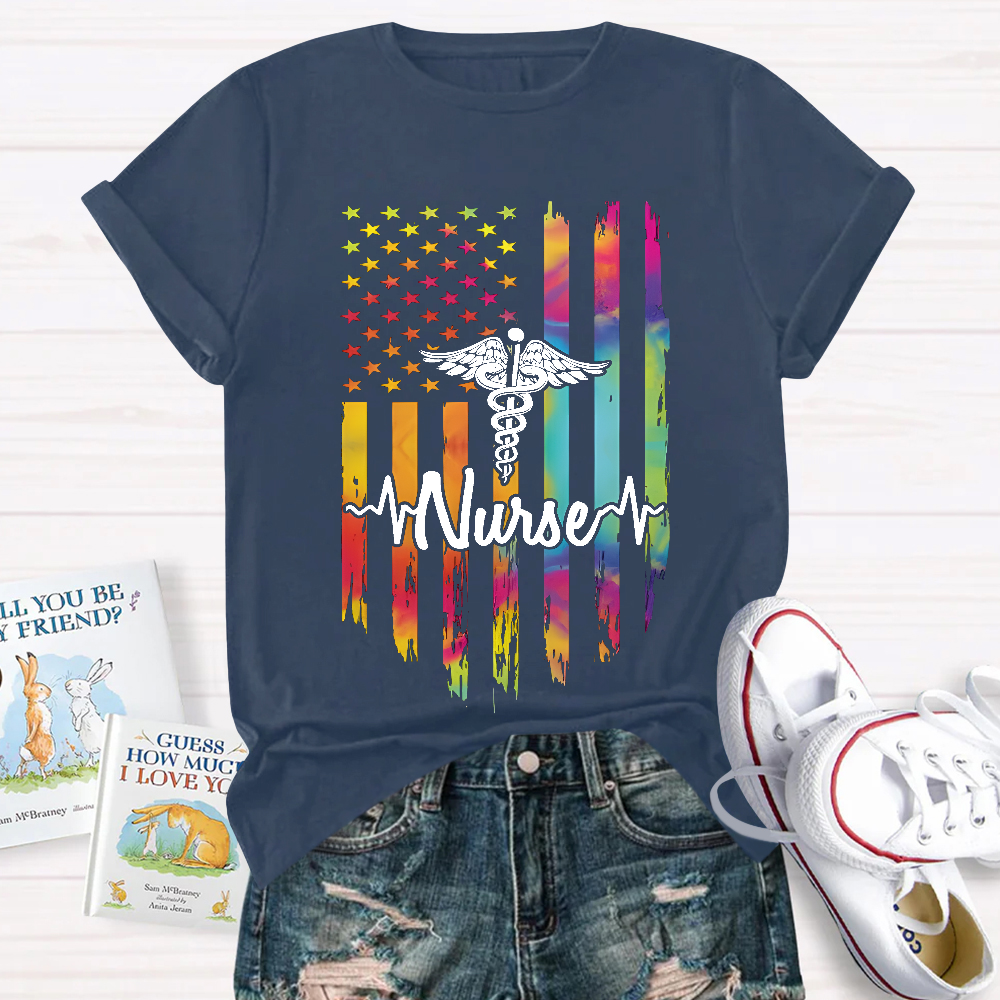 Colorful Flags And Medical Symbols Cotton Nurse T-shirt