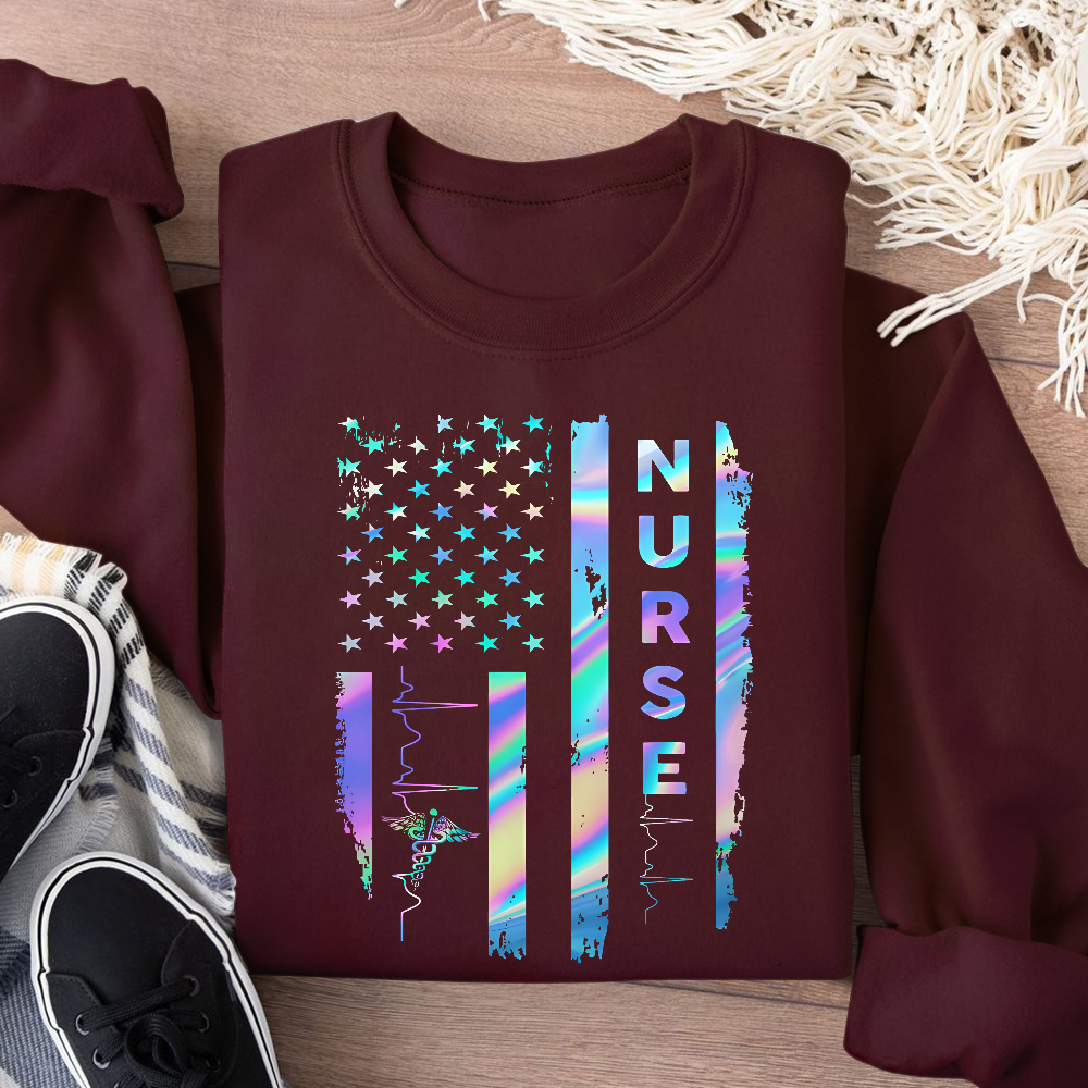 Colorful Flags And Medical Symbols Cotton Pullover Sweatshirt
