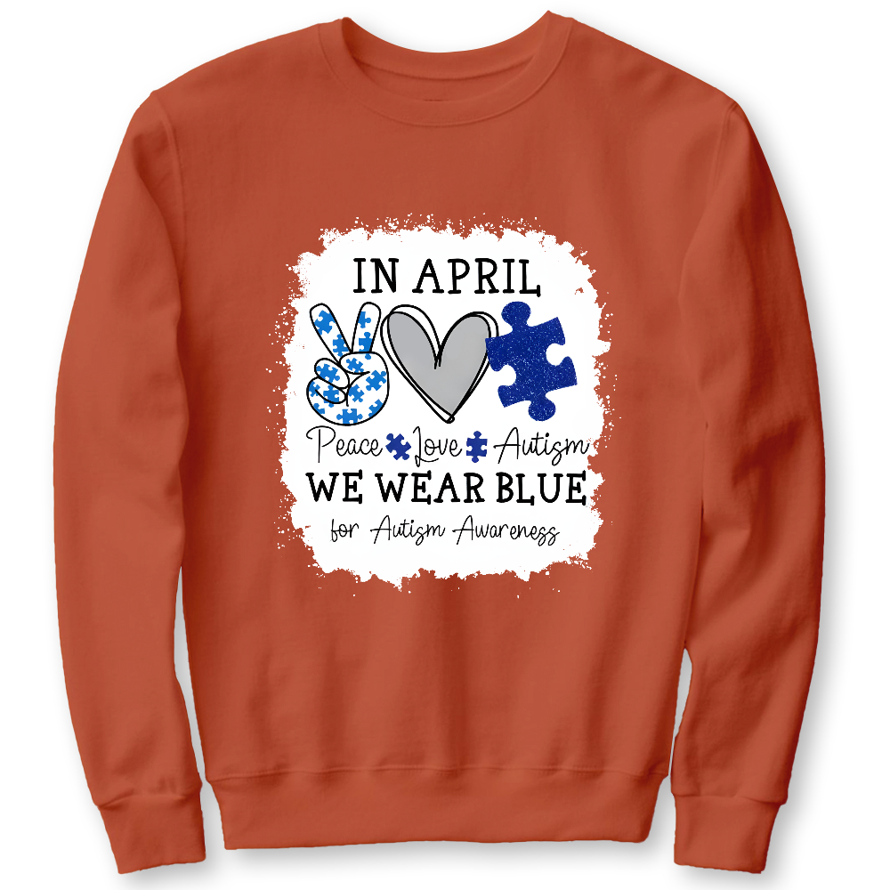 In April We Wear Blue For Autism Awareness Cotton Pullover Sweatshirt