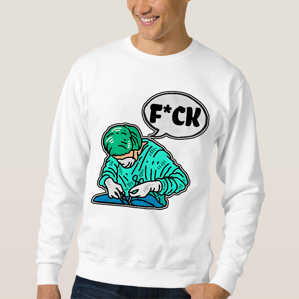 Swearing Surgeon Print Cotton Pullover Sweatshirt