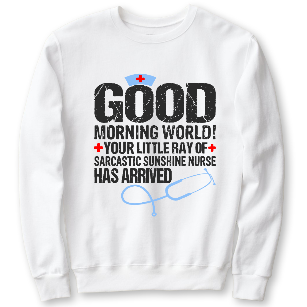 Sarcastic Sunshine Nurse Print Cotton Pullover Sweatshirt