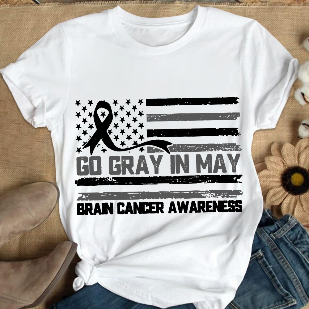 In May We Wear Gray Brain Cancer Awareness Cotton Nurse T-shirt