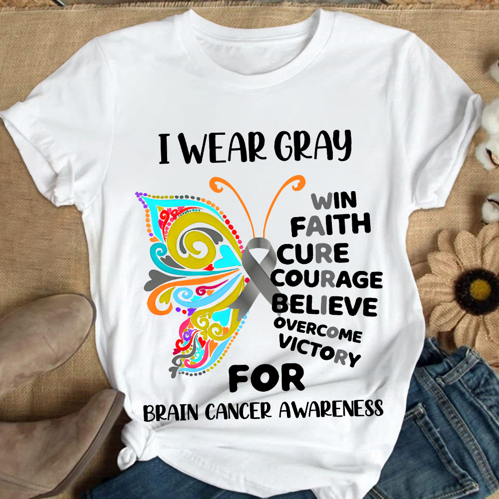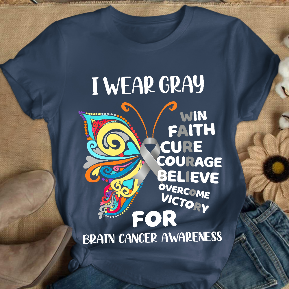 I Wear Gray For Brain Cancer Awareness Cotton Nurse T-shirt