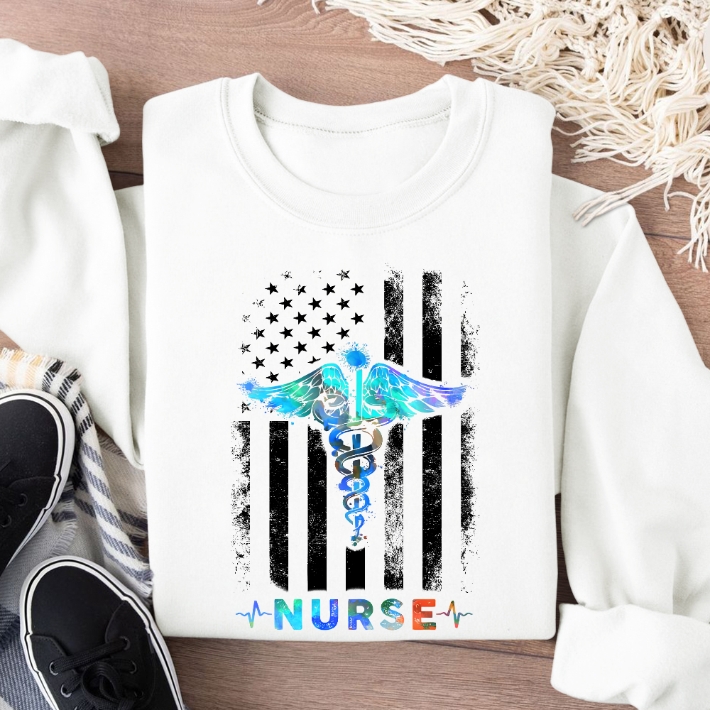 Mysterious Medical Symbol And American Flag Cotton Pullover Sweatshirt