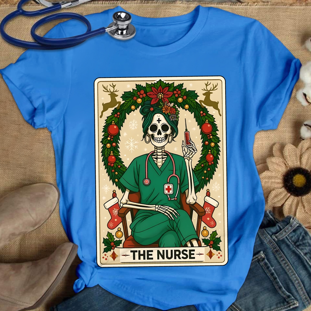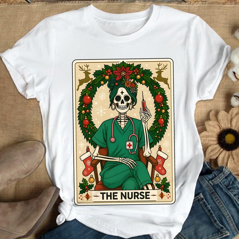 The Nurse Skeleton Tarot Card Xmas Cotton Nurse T-shirt
