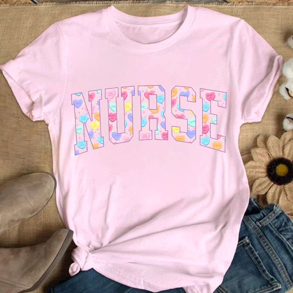 Cute RN Valentines Day Cotton Nurse T-shirt