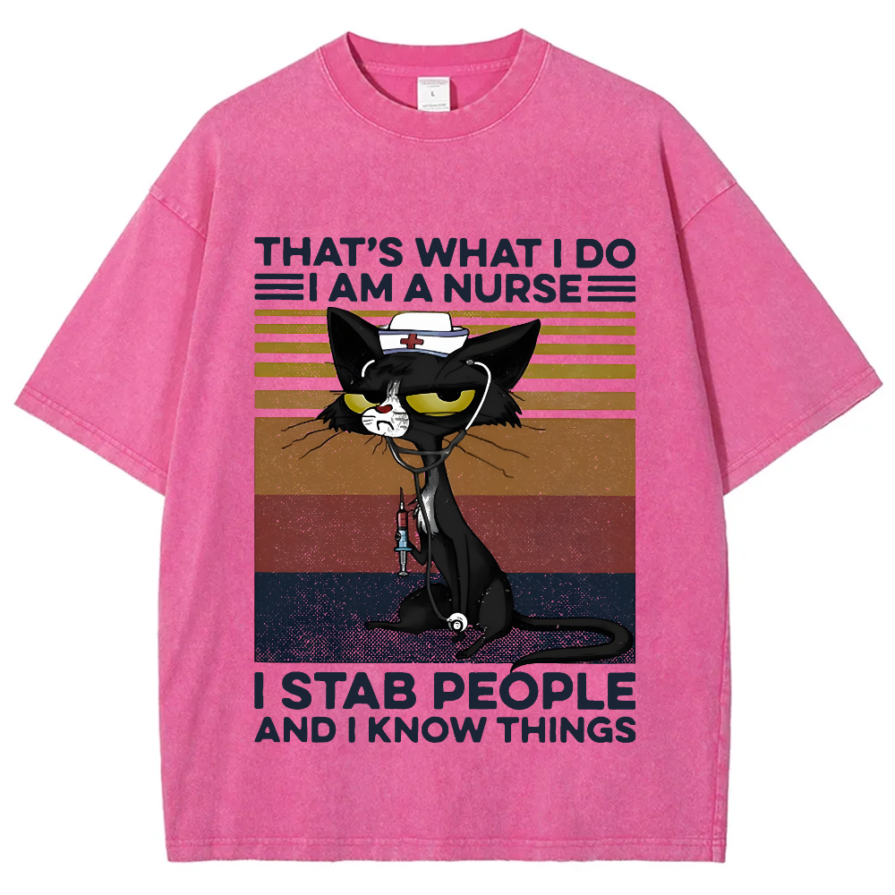 Cat That's What I Do I Am A Nurse I Stab People And I Know Things Vintage Washed T-shirt