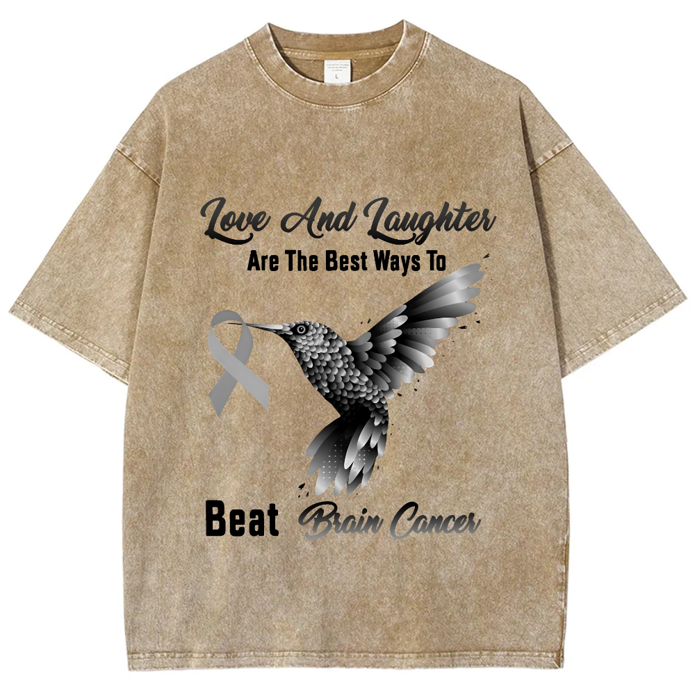 Love And Laughter Are The Best Ways To Beat Brain Cancer Vintage Washed T-shirt
