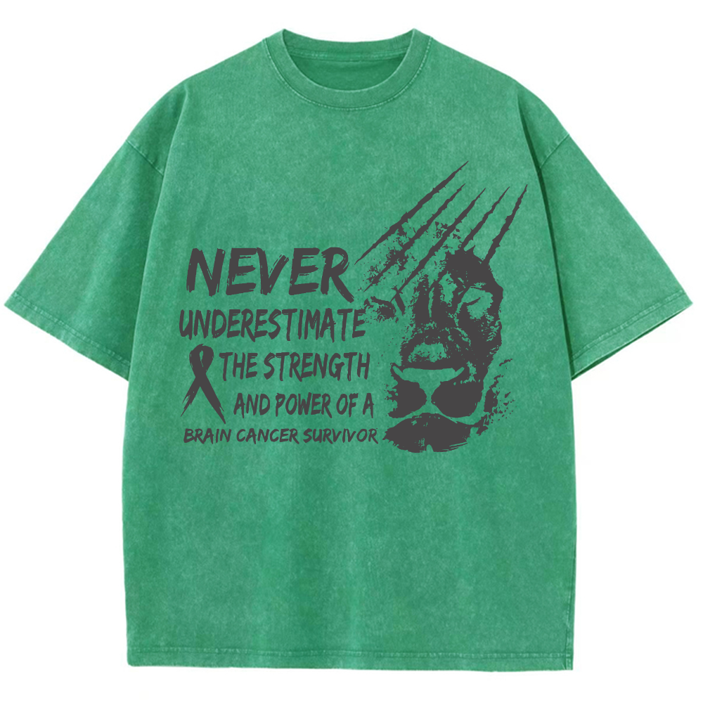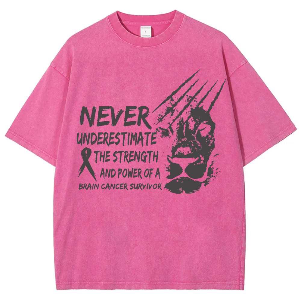 Never Underestimate The Strength And Power Of A Brain Cancer Survivor Vintage Washed T-shirt