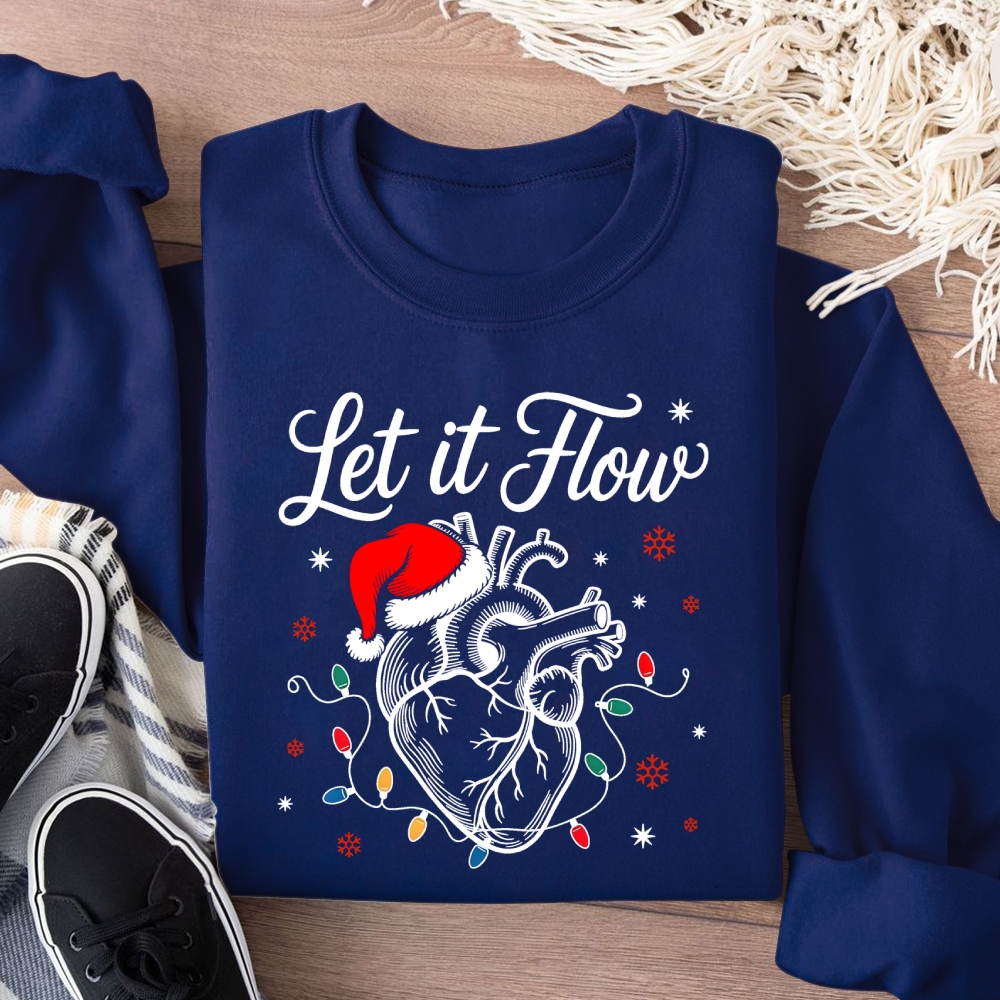 Let It Flow Santa Hat Heart With Lights Cotton Pullover Sweatshirt
