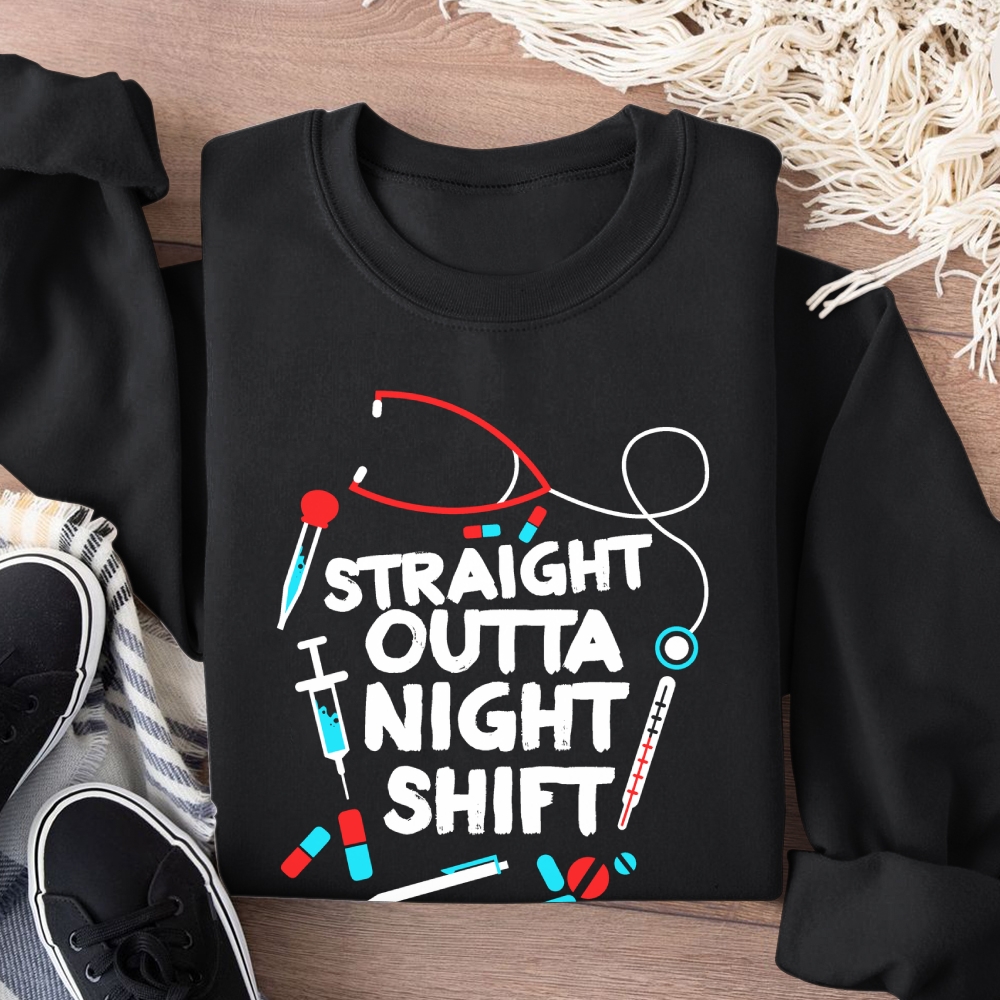 Straight Outta Night Shift Cotton Pullover Sweatshirt