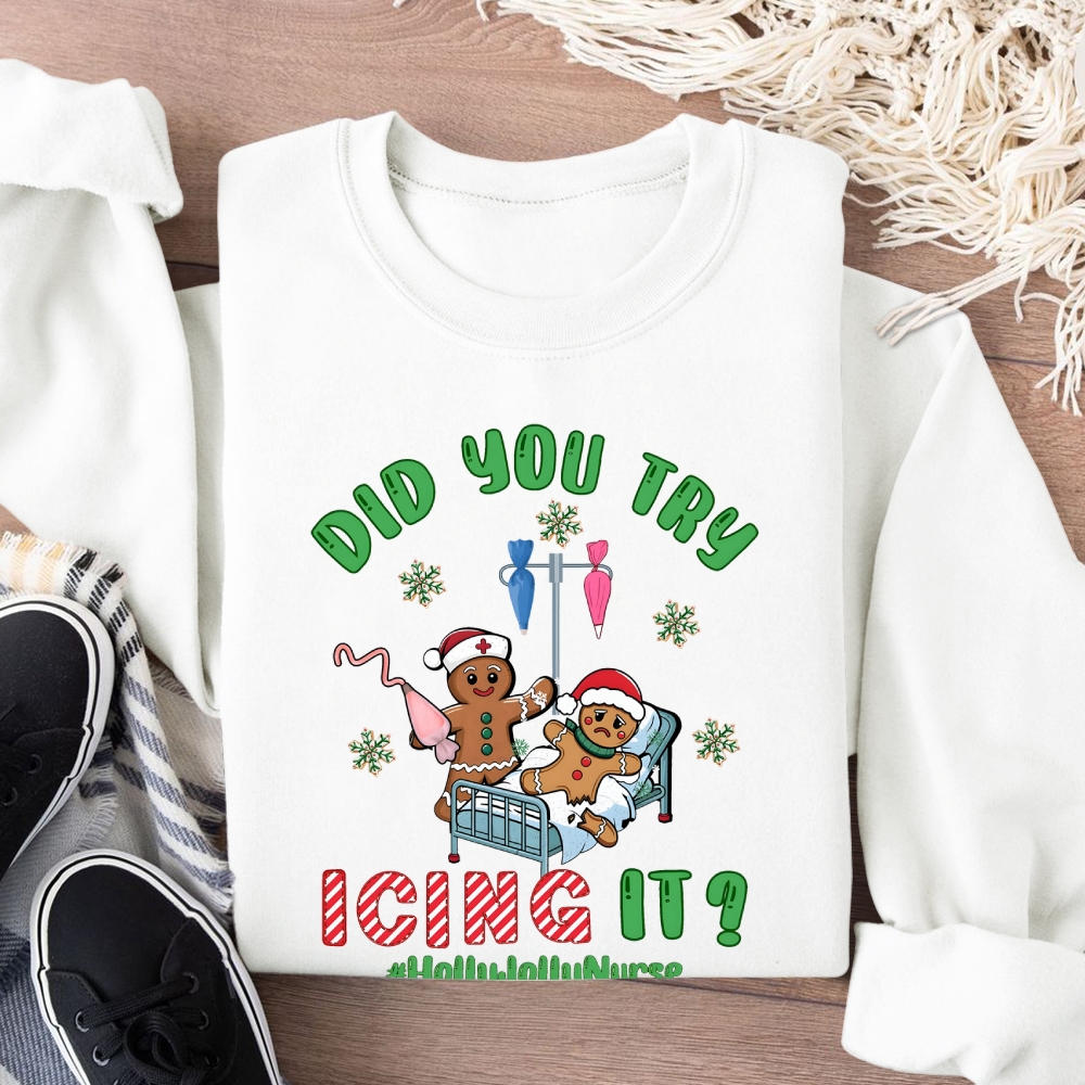 Funny Christmas Gingerbread Nurse Cotton Pullover Sweatshirt