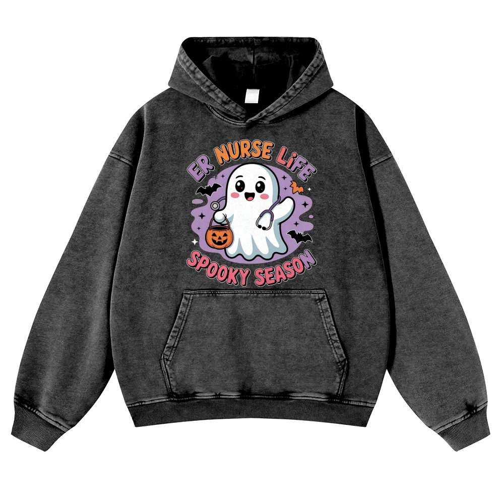 Emergency Department Funny ER Nurse Halloween Spooky Season Vintage Washed Hoodie