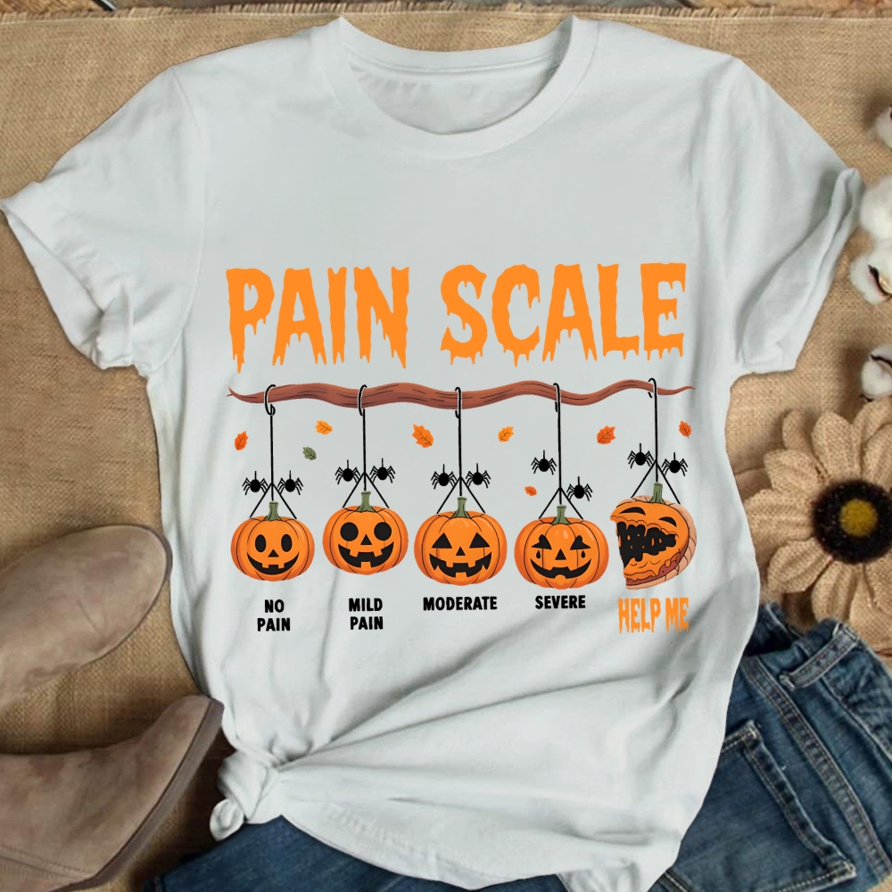Spooky Pumpkin Pain Scale Trauma Nurse Triage Halloween Cotton Nurse T-shirt