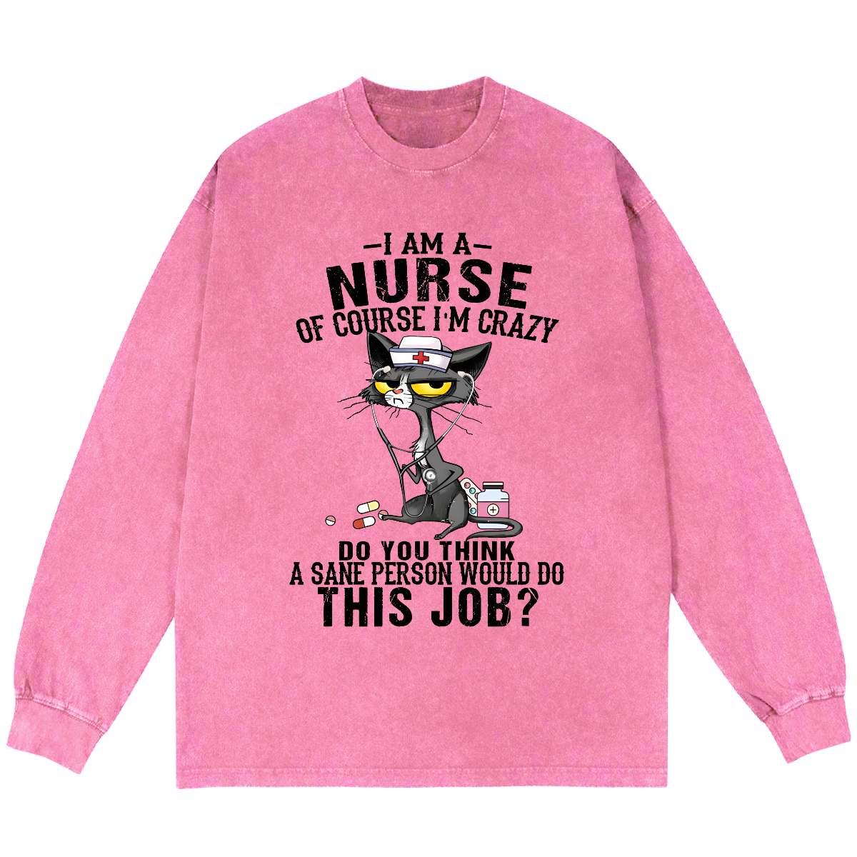 Cat I Am A Nurse Of Course I'm Crazy Vintage Washed Sweatshirts
