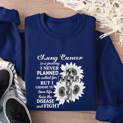Lung Cancer Is A Journey Of Strength And Courage Cotton Pullover Sweatshirt