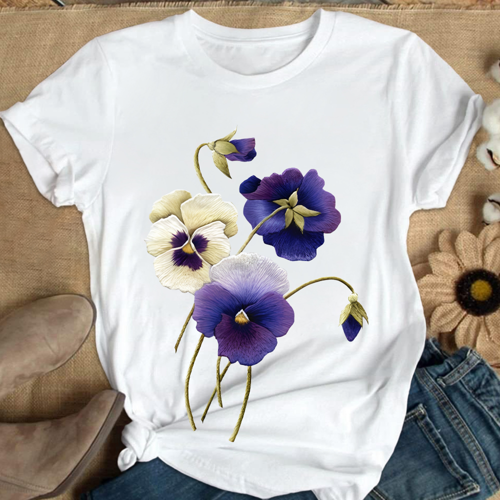 Alzheimer's Awareness Purple Floral Print Cotton Nurse T-shirt