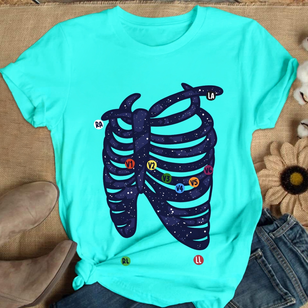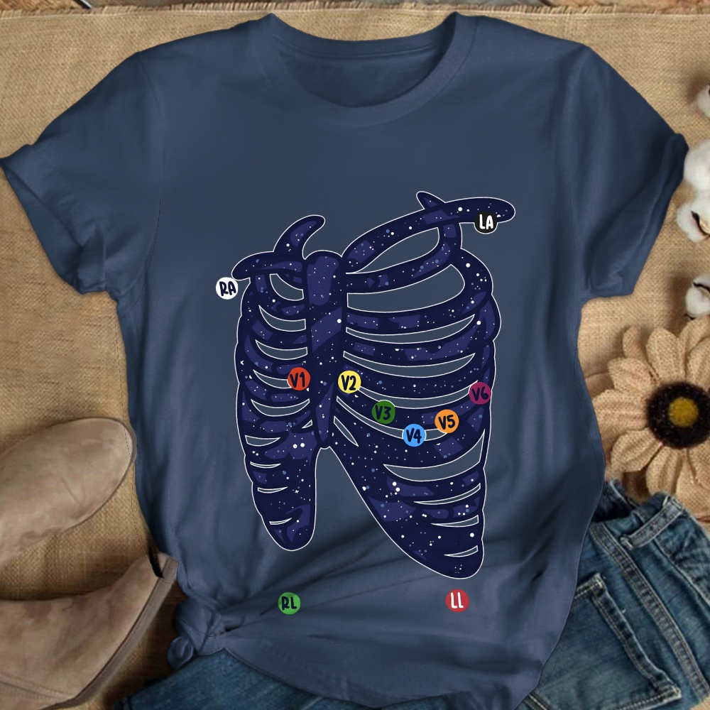 Hand Drawn Electrocardiogram Galaxy Placement Cotton Nurse T-shirt
