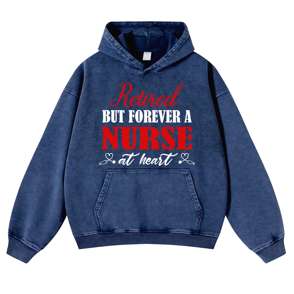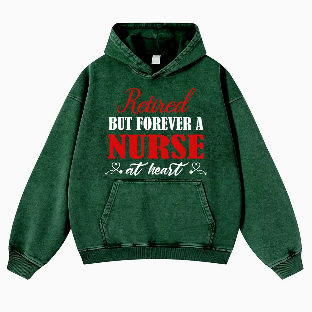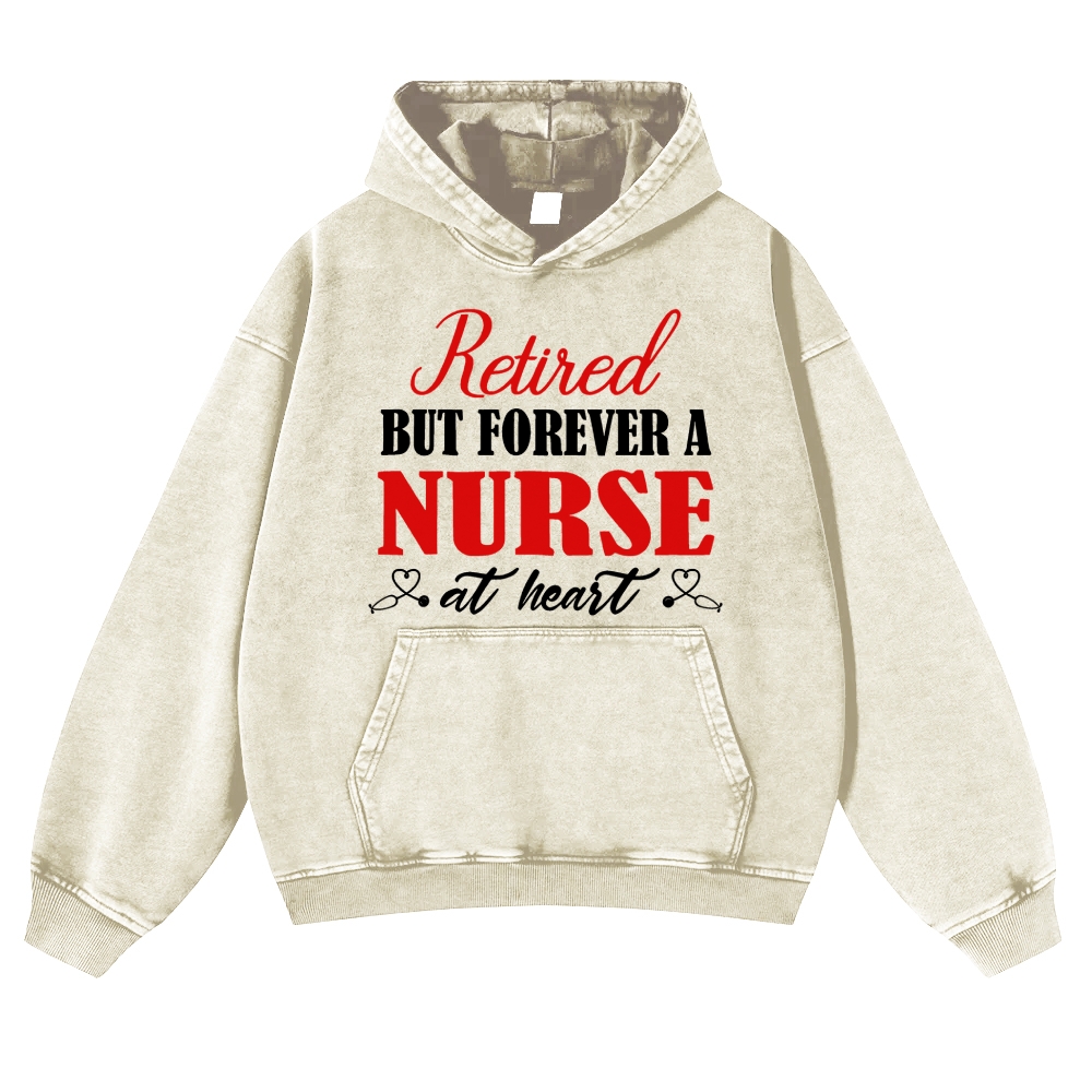 Retired But Forever A Nurse Vintage Washed Hoodie
