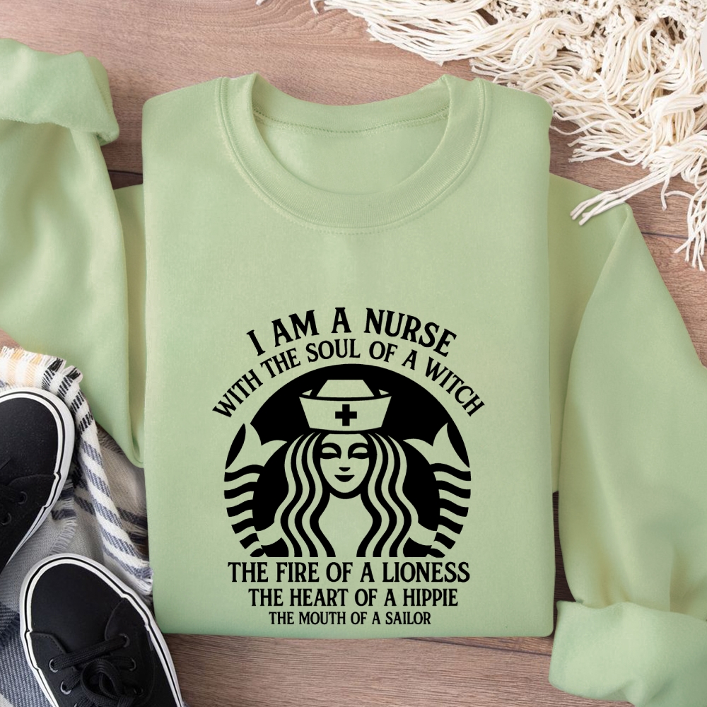 I Am A Nurse With The Soul Of A Witch Cotton Pullover Sweatshirt