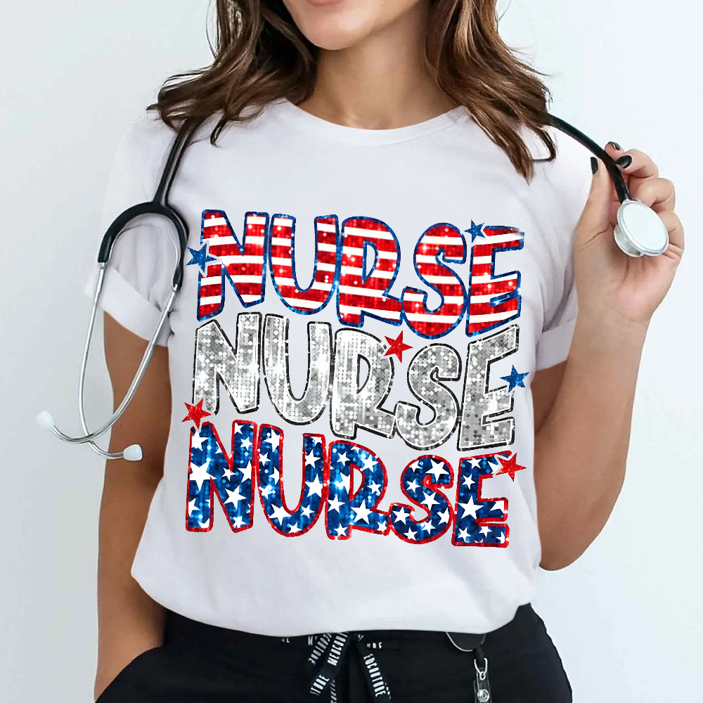 Glitter Star And Strip Flag Cotton Nurse T-shirt