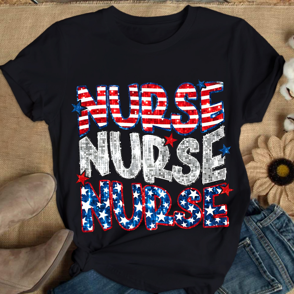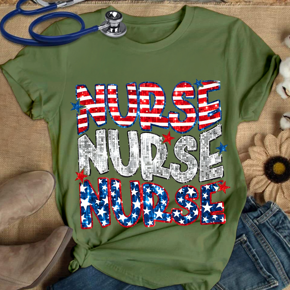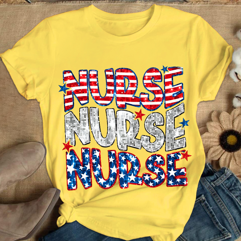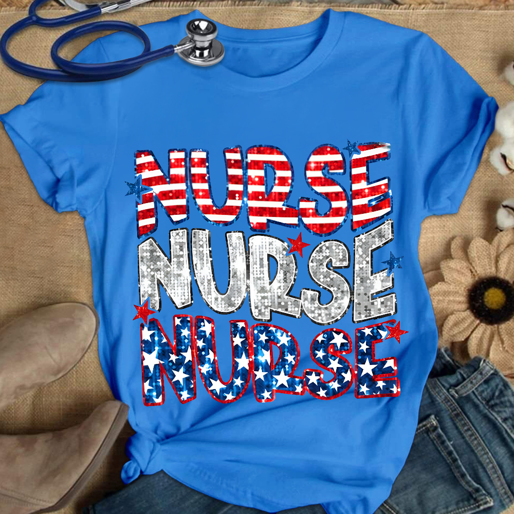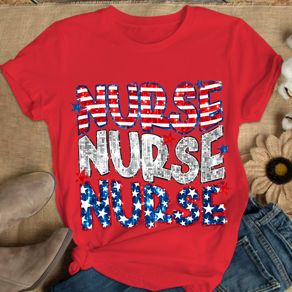 Glitter Star And Strip Flag Cotton Nurse T-shirt